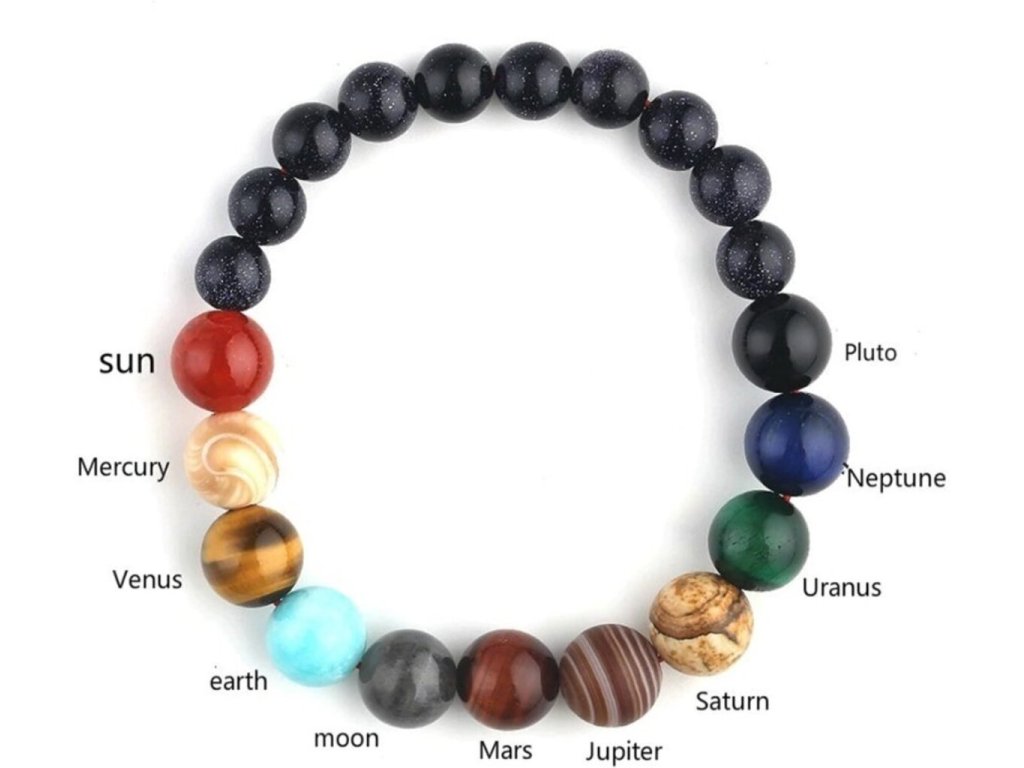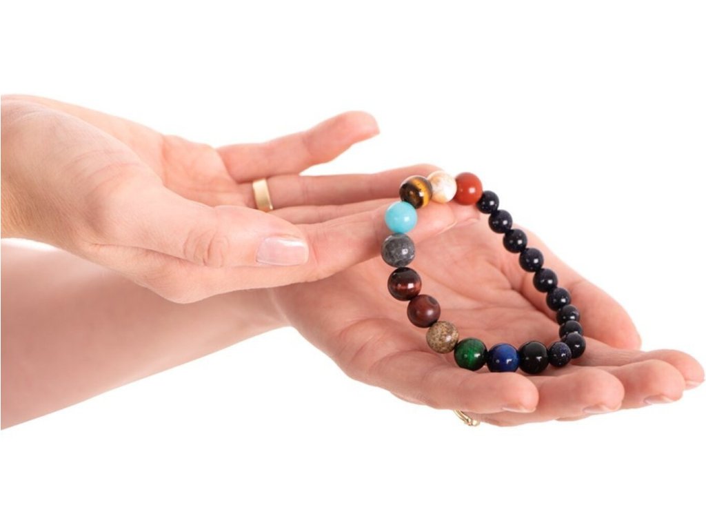 Hvězdy a prostor jsou nyní na dosah ruky, mohou ležet na dlani, ale vypadají nejkrásněji na ženském zápěstí. Stylový a originální, romantický a jedinečný náramek symbolizující planety naší sluneční soustavy. Od Slunce přes Merkur, Venuši, Zemi, Měsíc, Mars, Jupiter, Saturn, Uran a Neptun po Pluto.
