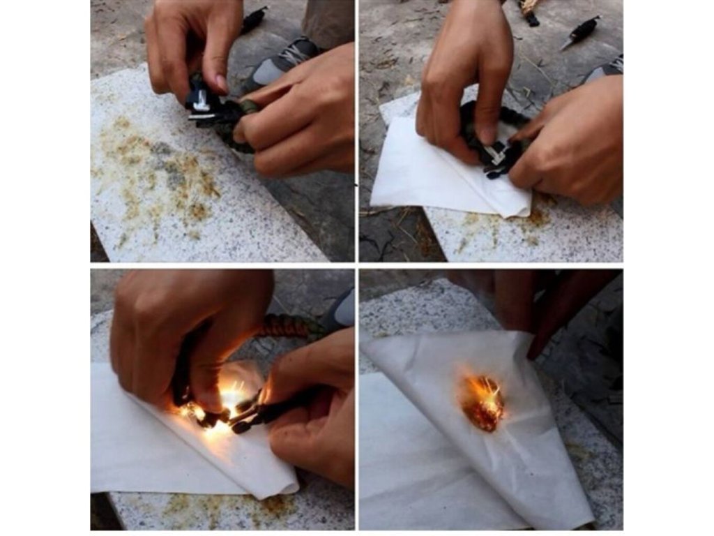 - Náramek na přežití s pazourkem a varovným píšťalkou a mini čepelí