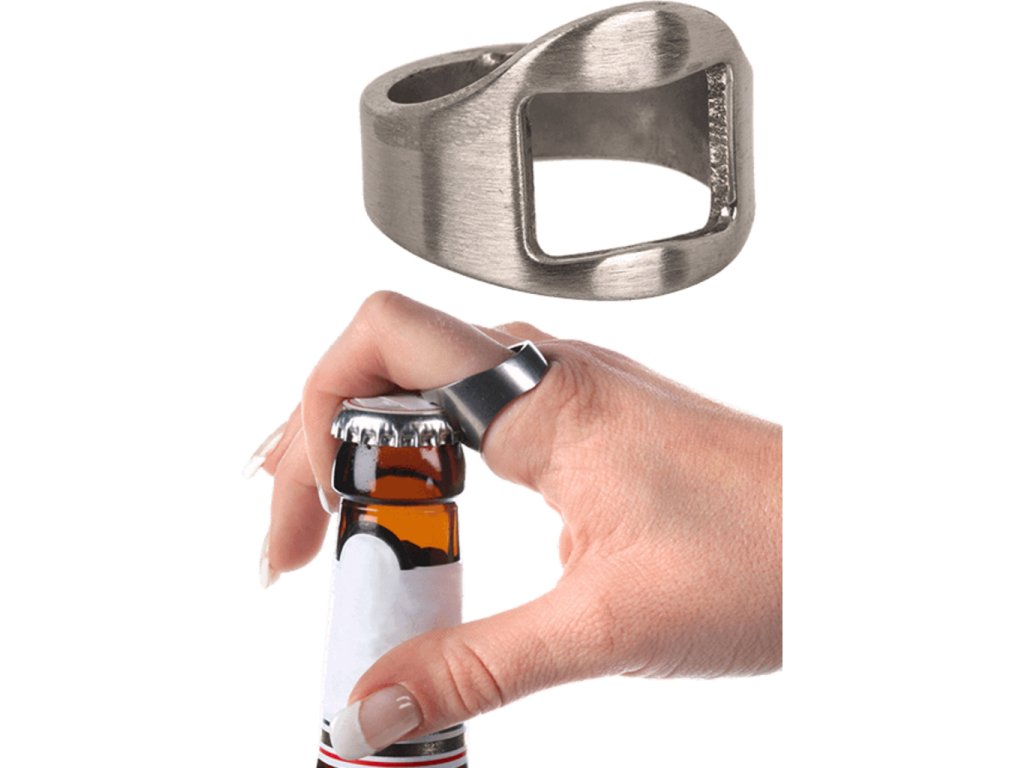 Každému se již na party stalo, že si chtěl otevřít láhev svého oblíbeného pití a neměl čím. Díky tomuto prstenovému otvíráku se Vám to již nikdy nestane. Jedná se o jednoduchý prstýnek s otvírákem na spodní straně. Nejenže nebudete závislí na jiném otvíráku, ale také budete vypadat, že otvíráte lahve bleskurychle a pouze rukou.