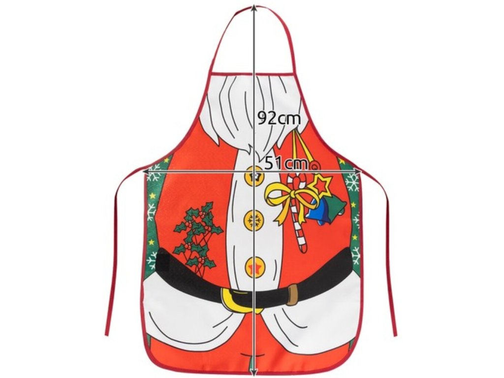 Představte si přípravu vánoční večeře bez starostí o skvrny a nečistoty na vašem oblečení. S naší vysokokvalitní vánoční kuchyňskou zástěrou v ikonickém outfitu santa clause můžete vařit s radostí a bez obav. Materiál zástěry je odolný a snadno se udržuje čistý, takže se soustředíte pouze na vaše kulinářské dovednosti. Navíc je zástěra pohodlná a dobře padne díky individuálně přizpůsobitelným ramínkům. Díky nadčasovému designu s motivem Santa Clause se naladíte na vánoční atmosféru a budete se cítit jako skutečný kuchařský profesionál. Tato zástěra je také skvělým dárkem pro milovníky vaření a pečení. Užijte si magickou atmosféru Vánoc s naší praktickou a zároveň stylovou vánoční kuchyňskou zástěrou. Buďte hvězdou ve své kuchyni a nechte své kulinářské dovednosti zazářit!
