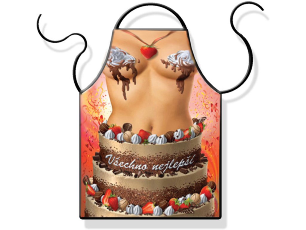 Jak sladký bude pohled na Vaší ženu při vaření, když bude nosit tuto originální zástěru - dort. Na zástěře je velice svůdný obrázek nahého dámského těla v lahodně vypadajícím dortu. Až v této zástěře uvidíte svou partnerku, budou se Vám sbíhat sliny. Udělejte své ženě radost k narozeninám a kupte ji tuto jedinečnou zástěru na vaření. Zástěra - Dort je originální dárek pro ženy.