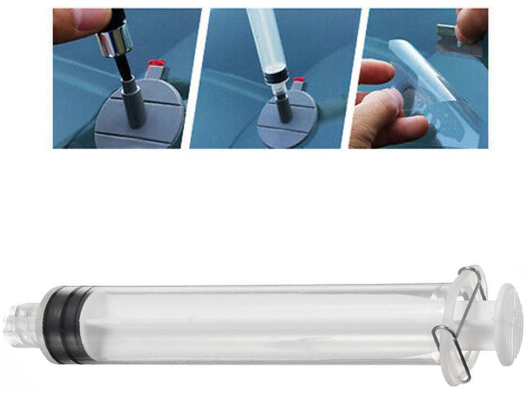 - Do aplikátoru vložte přiměřené množství lepidla (podle velikosti trhliny). Na menší poškození (průměr 4-7 mm) obvykle stačí 5-10 kapek.