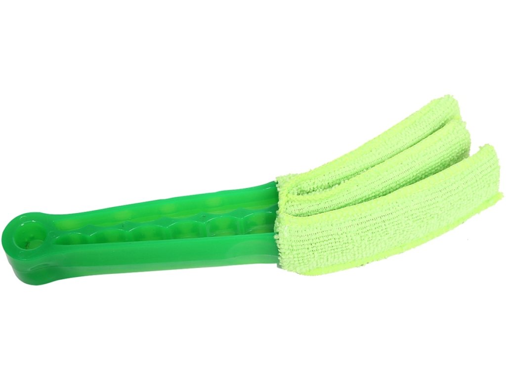 Mimořádně praktický kartáč z mikrovlákna určený pro čištění žaluzií. Nenahraditelný a mimořádně účinný při uklízení těžko přístupných míst. Kartáč má tři speciálně profilované hroty z mikrovlákna, které účinně zachycují prach z žaluzií nebo mřížek klimatizace a ventilace. Dlouhá a dobře profilovaná rukojeť usnadňuje čištění.
