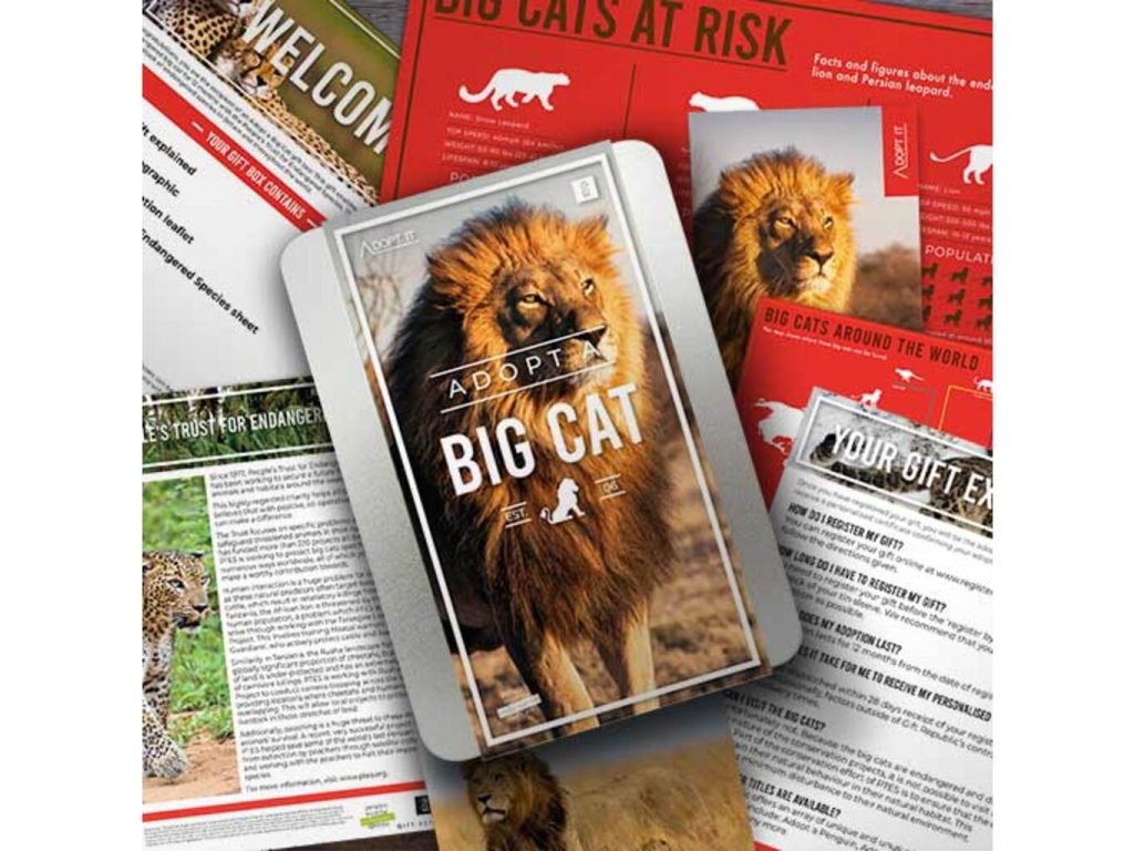 Objevte jedinečný dárek, který zanechá stopu nejen ve vašem srdci, ale i v naší planetě. Představujeme vám dárkovou krabičku "Adopt a Big Cat" – dar, který skutečně mění svět. Když si tento balíček pořídíte, zapojíte se do podpory nadace People's Trust for Endangered Species (PTES), která se usilovně věnuje ochraně velkých koček a jejich přírodních stanovišť po celém světě. Udělejte radost sobě nebo svým blízkým a těšte se na nádherné fotografie, fascinující informace a uvítací balíček plný zajímavostí o těchto majestátních tvorech. S registrací získáte i personalizovaný adopční certifikát, který potvrdí váš závazek k zachování přírody. Vaše pomoc přispěje k financování klíčového výzkumu a ochraně těchto ohrožených druhů. Přidejte se k nám ještě dnes a podpořte budoucnost velkých koček. Udělejte z každé příležitosti nezapomenutelný okamžik a adoptujte!