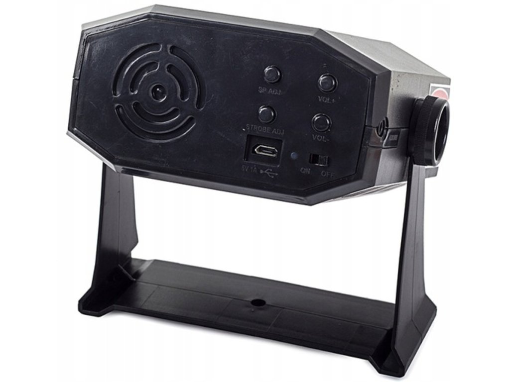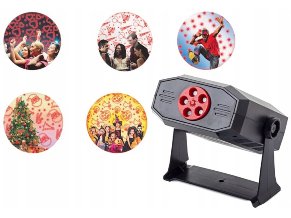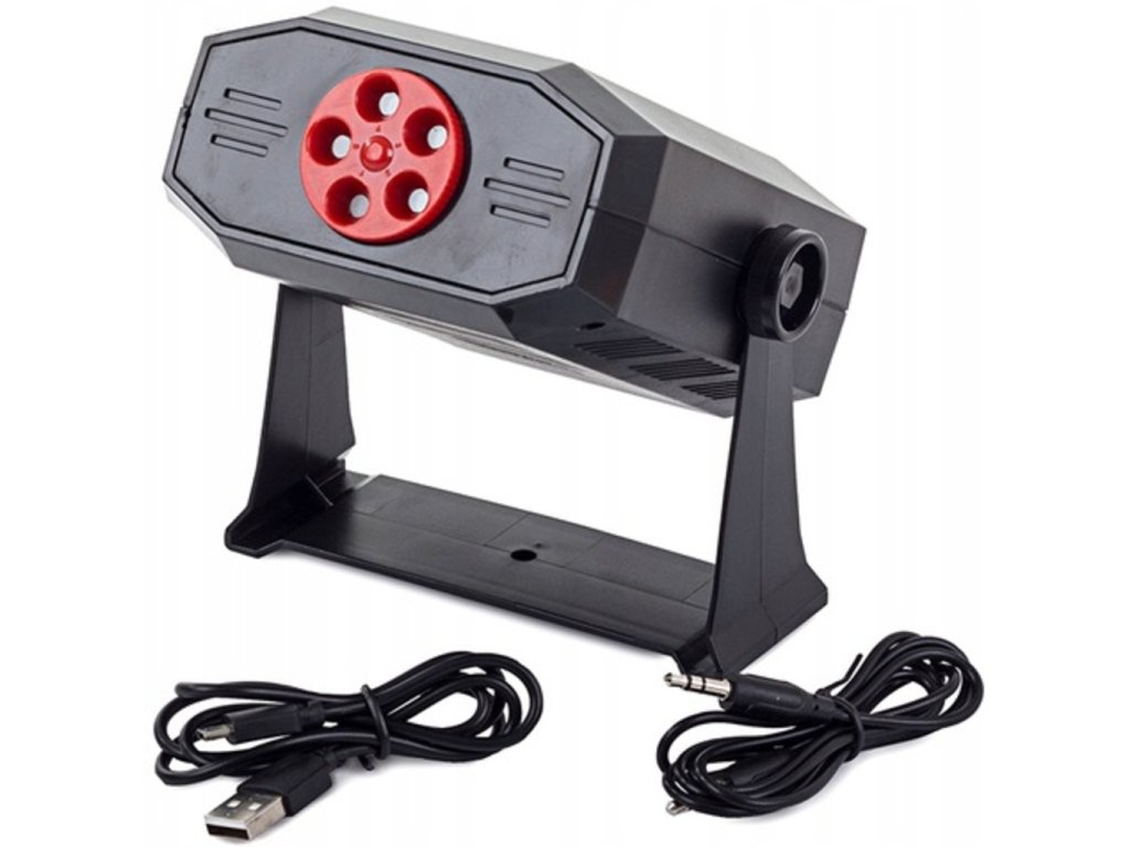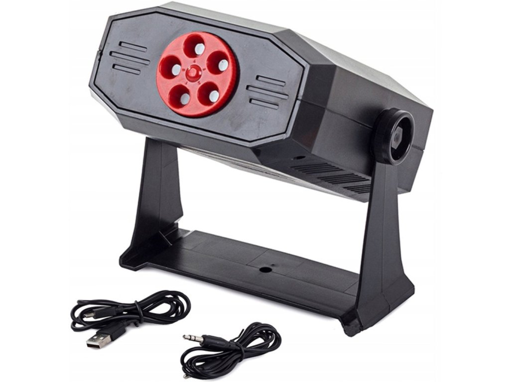 Disko laser projektor je ideálním zařízením pro různé druhy speciálních akcí, ale i domácích akcí. Relaxujte s blízkými, užívejte si s přáteli a obdivujte kouzla jeho světelných efektů. Díky nakloněnému objektivu si můžeme vybrat pět různých možností zobrazení pro vánoční, valentýnské, halloweenské, narozeninové a diskotékové osvětlení. Každou z vybraných možností lze upravit pomocí tlačítek umístěných na ovládacím panelu. Projektor má funkci reproduktoru. Pomocí zvukového kabelu jej můžete připojit ke smartphonu nebo tabletu a poslouchat svou oblíbenou hudbu.