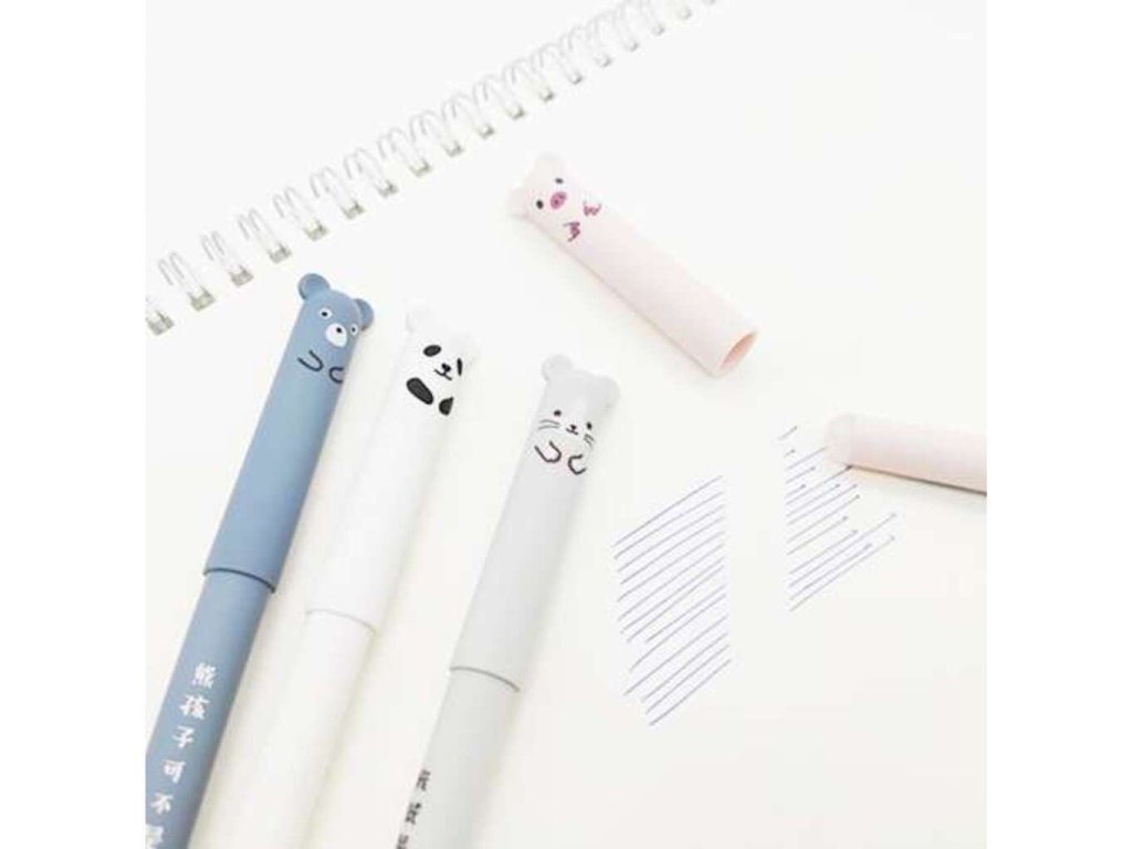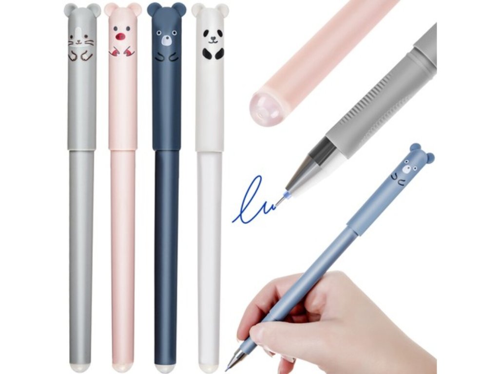 Modré gumovací pero se bude skvěle hodit do školy, protože guma, dokáže smazat každou chybu při psaní. Elegantní design a přesná špička dělají psaní s nimi čistým potěšením. Vyměnitelná pera mají unikátní rychleschnoucí inkoust, který je citlivý na změny teploty. Proto by se neměl používat při psaní úředních dokumentů. Celá sada se skládá ze 4 per. Každý z nich má jinou barvu a představuje jiné zvíře. Tato sada jistě osloví každého malého umělce . Smazatelné pero, které je perfektní nejen pro učení se psaní, ale i pro rychlé poznámky. Díky stíratelnému inkoustu snadno odstraníte malou chybu nebo celé slovo . Guma je umístěna na konci pera. Prasátko, panda, myš a medvídek povzbudí vaše dítě, aby se naučilo psát. Bude se učit hrou. Pera mají náplň modrého inkoustu. Je to dobré řešení pro děti, které dříve ve třídě psaly tužkou a nyní se musí naučit používat pero. Tloušťka psací čáry je 0,35 milimetru. Smazatelné pero je určitě dobrým řešením, protože nezanechává nevzhledné stopy .