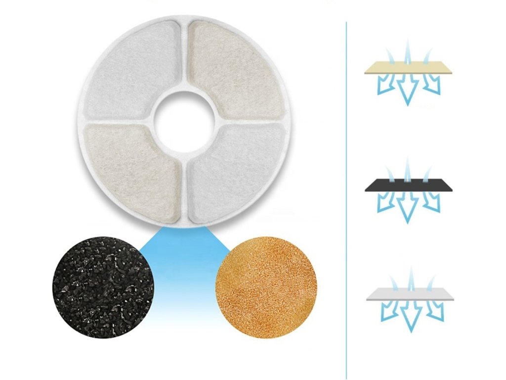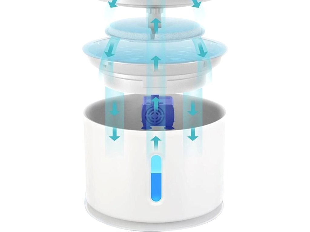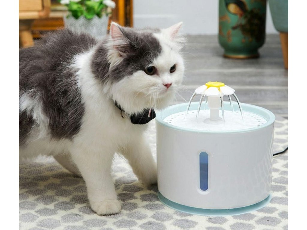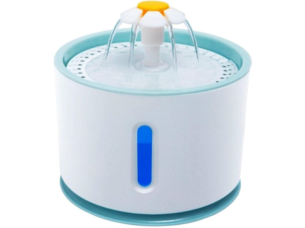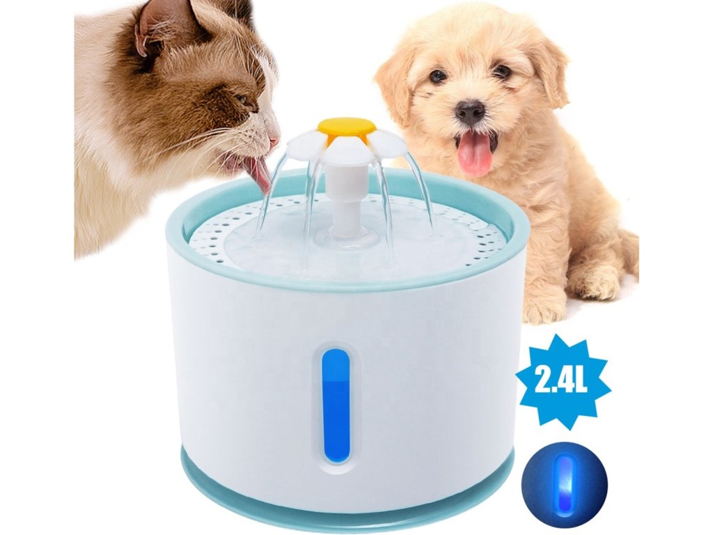 Automat na vodu pro domácí mazlíčky. Atraktivní design ve tvaru fontány s několika tryskami. Velká nádrž na vodu s kapacitou až 2,4 litru zajišťuje dlouhodobé používání. Filtrační systém (s vyměnitelným filtrem) zajišťuje čerstvou a čistou vodu pro vašeho mazlíčka. Napáječka je vybavena tichým a účinným čerpadlem, zařízení může úspěšně pracovat i v noci. Zařízení má tři různé režimy provozu (průtok vody). Bezpečnost používání zvyšují funkce automatického vypnutí a signalizace nedostatku vody (pomocí LED podsvícení).