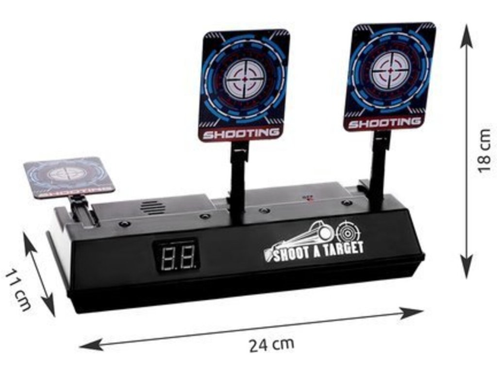 Nepostradatelný doplněk pro malého fanouška raketometů NERF. Elektronický štít je skvělá zábava pro děti i dospělé. Cílem hry je zasáhnout tři terče. Hra skvěle rozvíjí obratnost a koordinaci ruka-oko a učí pravidla soutěže a fair play. S Elektronickým terčem Nerf se určitě nikdo nudit nebude. Nákup Elektronického terče Nerf je uspokojením skvělé zábavy a příjemného času s rodinou a přáteli - aniž byste museli opouštět domov a platit za zábavu.