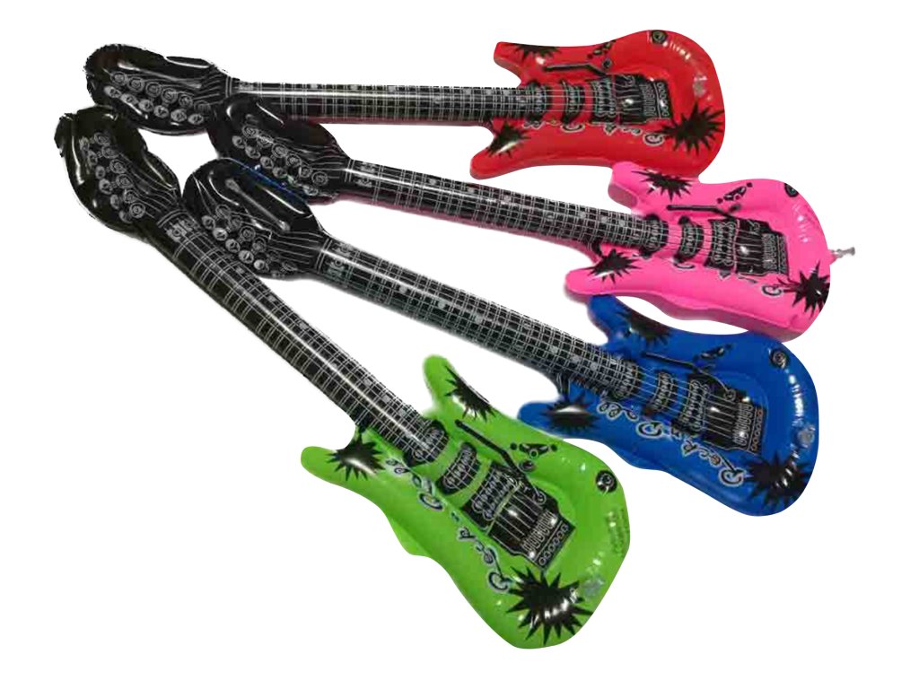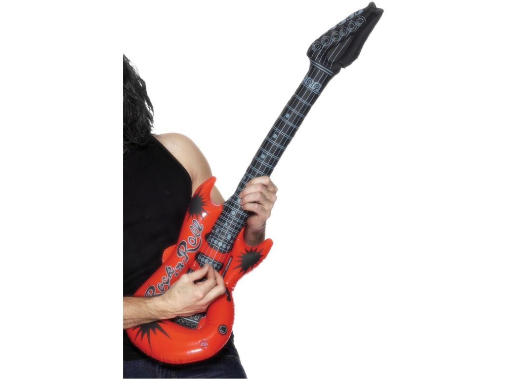 Bez této zábavné nafukovací elektrické kytary by váš hudební večírek / maškarní kostým nebyl úplný. Ponechte tuto nafukovací rekvizitu svým hostům, aby s ní mohli pózovat, ideální na večírky. Ideální pro hudební párty u bazénu!!