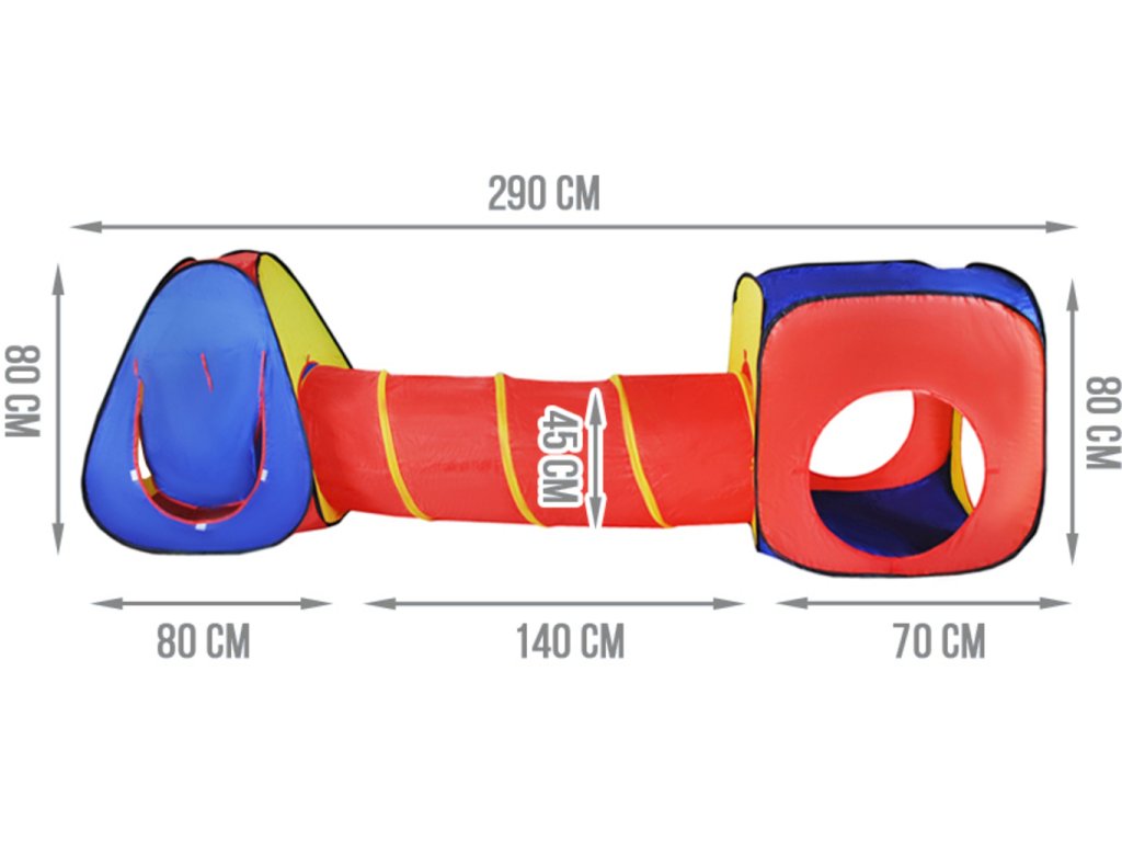 Děti si rády budují své vlastní skrýše a domečky. Tento stan pro děti s tunelem je ten pravý dárek pro Vaše ratolesti. Snadno a rychle stan rozložíte i složíte a nezabere Vám žádné místo. Stan tvoří tři části na elastických drátech. Kupte svým dětem tento jedinečný dárek a uvidíte, že je zabavíte i na celé hodiny. Děti si se stanem s tunelem náramně vyhrají a můžou se v něm i schovávat a relaxovat. Stan pro děti s tunelem je originální dárek pro děti.