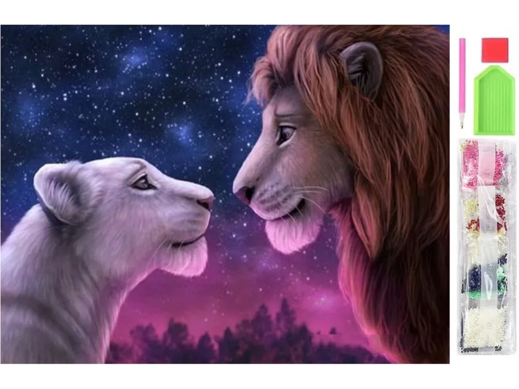 Diamantové malování - 5D lev a lvice 30x40