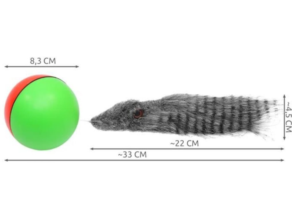 Hračka fretka s balónkem, kterou lze velmi snadno používat a milují jí všichni větší mazlíčci. Stačí stisknout tlačítko uvnitř míče a začne šílený únik. Míč se točí, uniká mnoha různými směry a fretka k němu připojená ho následuje. Váš dobrodružný mazlíček bude následovat běžící fretku. Chytit prchající fretku však není tak snadné - míč neustále mění směr! Psi a kočky budou milovat fretku s balónkem. Vtipná unikající hračka pro zvířata zajistí pro vašeho mazlíčka hodně pohybu, který tolik potřebuje. Pokud vás unavuje házení míčků a váš mazlíček potřebuje zábavu - nezapomeňte zapnout hračku fretky a dívat se, jak váš mazlíček šílí radostí. Fretka bude fungovat jak pro menší psy a kočky, tak pro ty trochu větší. Fretka s balónkem je napájena bateriemi - můžete ji snadno vzít na procházku se svým psem. Běžící fretka má měkkou srst, kterou lze nejen pronásledovat a šťourat, ale také kousat. Míč je také vybaven gumovým těsněním, které velmi účinně zabraňuje zvlhnutí malého motoru. Je to skvělá zábava na dlouhé hodiny v kombinaci s fyzickou aktivitou vašeho mazlíčka. Váš mazlíček vám poděkuje za tak velkou atrakci!