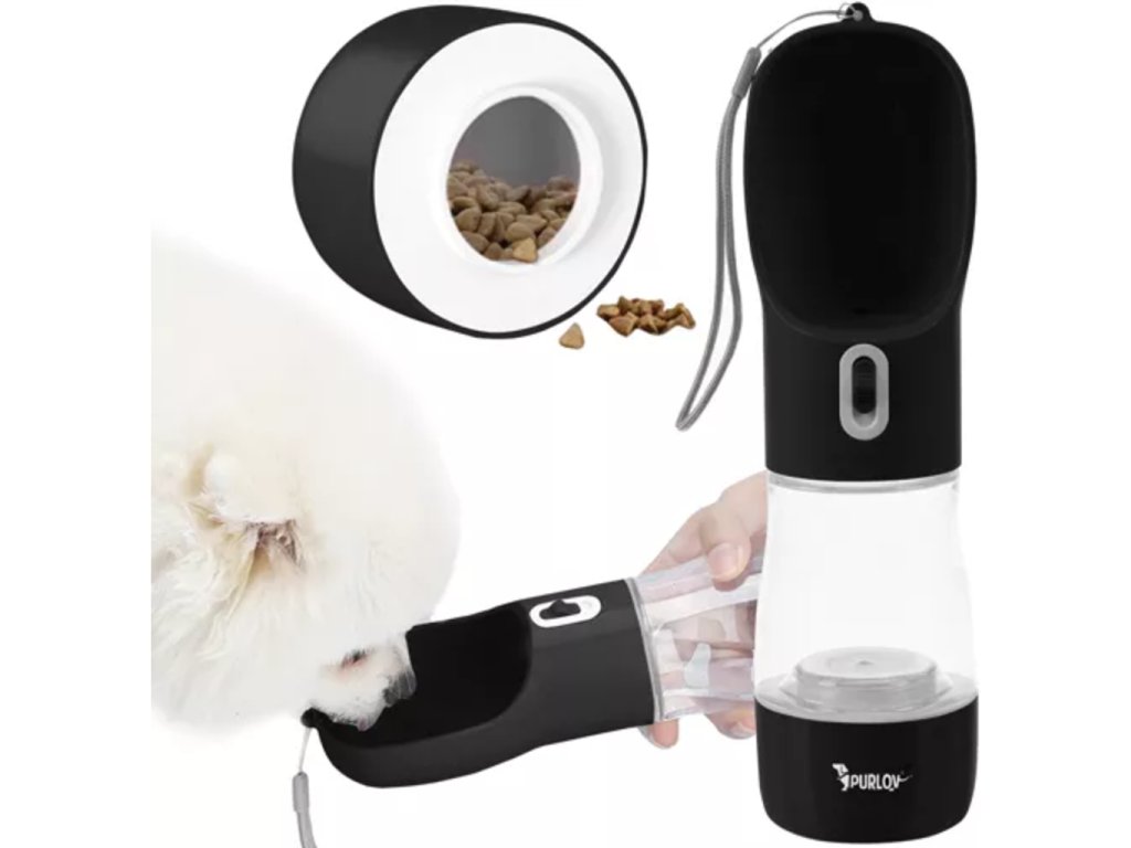 Rádi chodíte na dlouhé procházky se svým čtyřnohým mazlíčkem? Nebo máte někoho blízkého, komu by jste chtěli udělat radost užitečnou pomůckou pro nejlepšího přítele člověka. Touto téměř nezbytností není nic jiného než Láhev pro psy 2v1 300ml Tato láhev na vodu pro psa je unikátní v několika ohledech. Má 2 základní funkce. Můžete v ní skladovat jídlo a vodu , stejně jako krmit a napájet vašeho mazlíčka . Toto řešení zajistí, že váš mazlíček bude mít vždy přístup k čisté vodě a krmivu . Kompaktní rozměry lahve a provázku poslouží nejen při cestování, ale i na procházce či výletu mimo město. Provázek se bude hodit pro uchycení láhve s vodou, aby nepřekážela, ale byla vždy po ruce. Dávkovač je navržen tak, aby se mohli snadno napít psi malých i velkých plemen. Ergonomický tvar láhve umožňuje snadnou manipulaci i jednou rukou . Láhev má tlačítko, které umožňuje nalít správné množství vody z nádobky do misky. Tlačítko lze také uzamknout. Po napojení zvířete můžete zbývající vodu nalít zpět do nádoby. Díky tomu nevylijete vodu např. v autě.