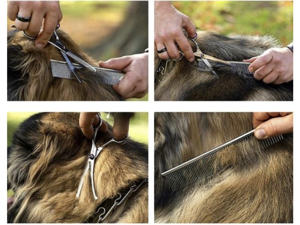 Naše sada nůžek a příslušenství pro úpravu psů je ideálním řešením pro všechny majitele psů, kteří chtějí pečovat o srst svého mazlíčka doma. Vyrobena z vysoce kvalitní nerezové oceli, nůžky jsou odolné, pohodlné a mají patřičnou ostrost. Bezpečnost je pro nás klíčová, proto jsou zaoblené konce čepelí navrženy tak, aby zabránily náhodnému pořezání nebo podráždění kůže vašeho psa. S ergonomickou rukojetí a protiskluzovým materiálem, nůžky jsou pohodlné a snadno ovladatelné. Díky speciálnímu designu umožňuje naše sada různé typy úprav srsti a je nesmírně důležitou pomůckou ve vaší péči o psí srst. Uzavřené pouzdro obsahuje také další užitečné nástroje jako špendlíky, hadřík, klíč na vločku a kovový hřeben. S našimi nůžkami na úpravu psů budete mít vše, co potřebujete pro zachování zdravého, pohodlného a atraktivního vzhledu vašeho mazlíčka!