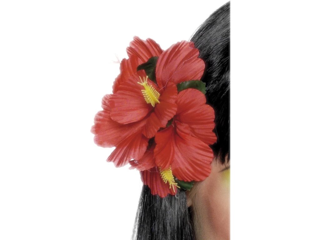 Havajské kvítko spona do vlasů červená
