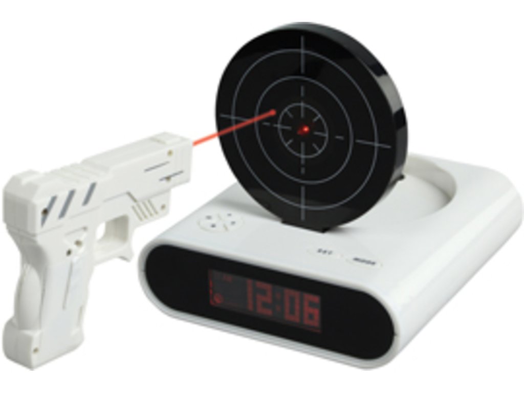 Nesnášíte raní vstávání a máte problém vylést z postele? Odkládáte budík pořád dokola protože je to jednodušší než vstát? Pořiďte si tento originální budík s terčem a nebojte se, že si budík ještě někdy odložíte. Nejprve nahrajte zprávu, kterou chcete, aby Vás budík budil a poté ho nastavte na určitý čas. Nejenže tento budík bude zvonit, ale také vyskočí terč, který musíte pomocí pistolky trefit. Dokud ho netrefíte, nepřestane hrát.