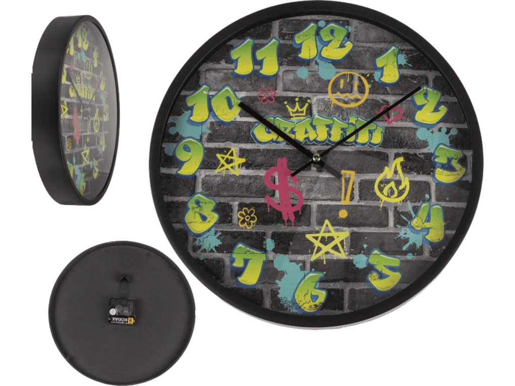 Transformujte svůj domov na oázu kreativity s našimi unikátními graffiti hodinami! Tyto neobyčejné nástěnné hodiny nejenže skvěle měří čas, ale především vnášejí do vašeho interiéru nádech městské energie a originality. Ideální pro ty, kteří se nebojí ukázat svůj jedinečný styl a osobnost. Přesuňte svou zeď z obyčejnosti do srdce pouličního umění a nechte každého obdivovat váš smysl pro detail. Hodiny Graffity jsou perfektním doplňkem do teenagerova pokoje, moderního ateliéru nebo trendy baru. Udělejte si radost, udělejte dojem na návštěvy a nechte každou minutu svého dne zářit kreativitou! Nyní je ten pravý čas přeměnit váš prostor na nezapomenutelný zážitek. Objednejte si své graffiti hodiny ještě dnes a zažijte okamžitou změnu!