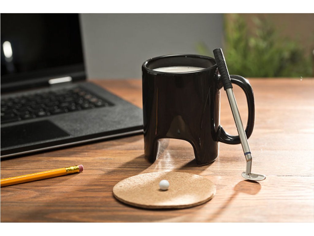Snídaně mohou být někdy velice ospalé a nudné. Proč byste si je nemohli zpříjemnit hraním golfu? Tento golf hrneček má speciálně tvarované dno pro průchod míčku. V sadě obdržíte hrnek, míček a golfovou hůl. Originální dárek pro každého.