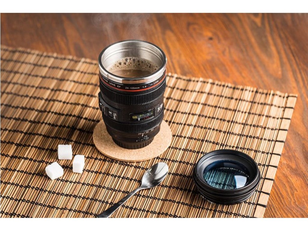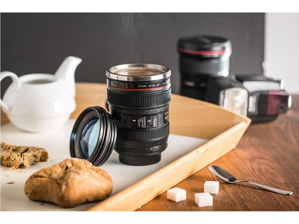 Je někdo u Vás v rodině fotograf? Pak si nelamte hlavu s dárkem a kupte mu k narozeninám tento stylový hrnek objektiv Lens cup. Hrnek je téměř k nerozeznání od objektivu fotoaparátu a máte k němu k dispozici i víčko. Nápoje tak zůstanou v hrnku dlouho teplé. Dopřejte si inspirativní ráno s douškem kávy v tomto krásném hrnku Lens cup. Hrnek objektiv Lens cup je originální dárek pro fotografy.