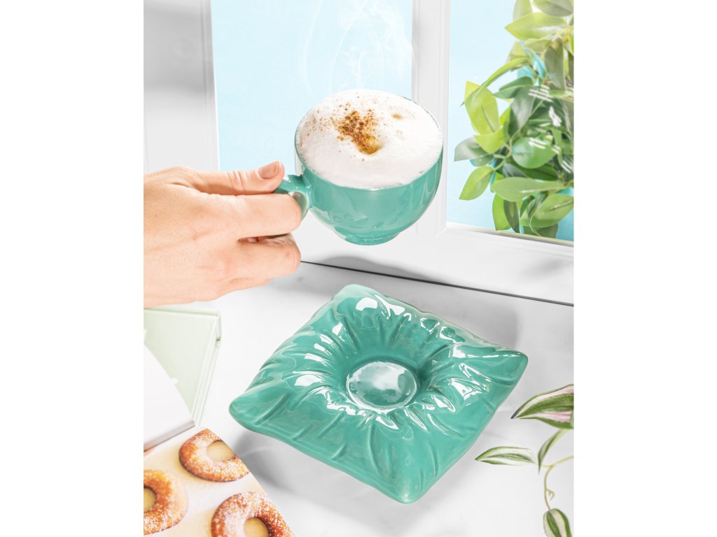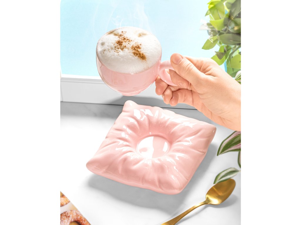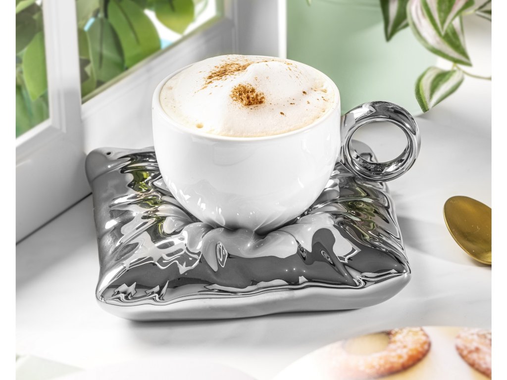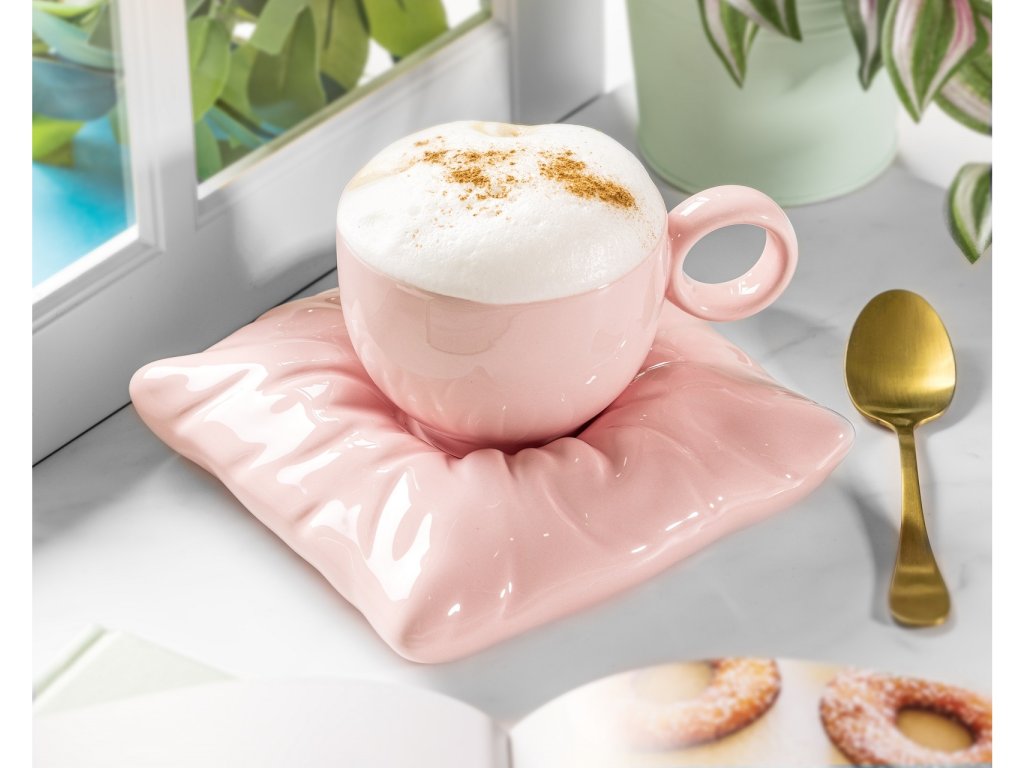 Ciťte se opravdu královsky při pití z našeho mimořádného šálku s polštářkem místo podšálku. Zavřete na chvíli oči, odpočiňte si a představte si, že se k vám distingovaným krokem blíží pohledný komorník v dokonale vyžehleném fraku a s nesmělým úsměvem pokývá hlavou a podává vám vaši oblíbenou kávu nebo čaj, jehož vůně vás jemně zahalí. Opravdu metafyzický zážitek...