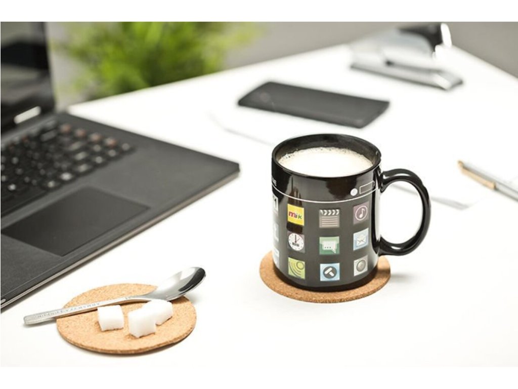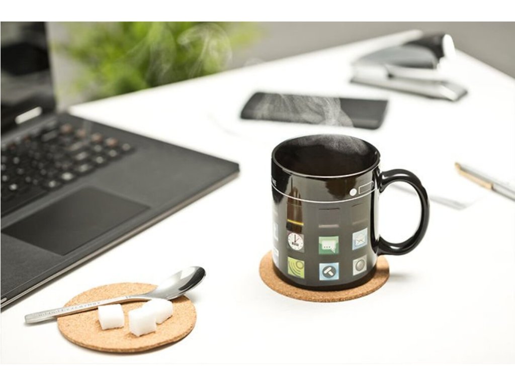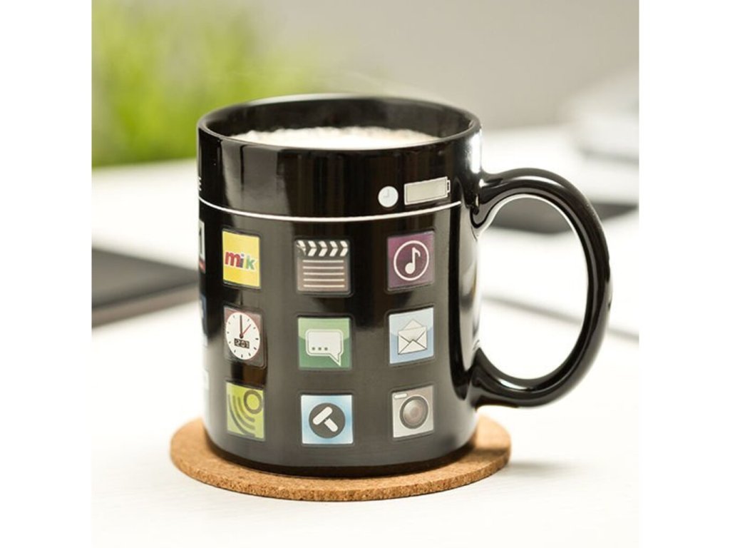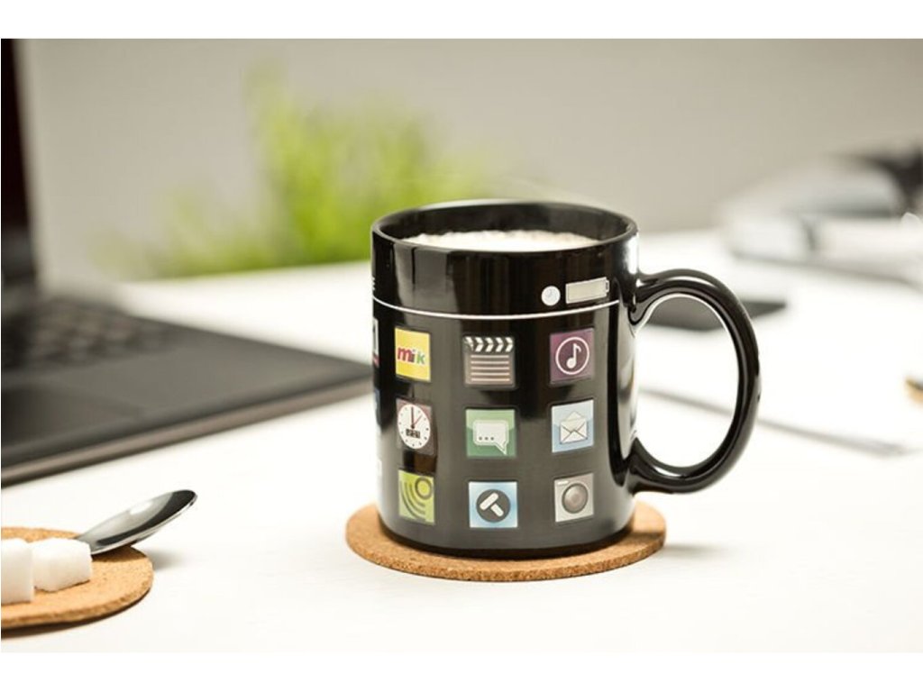 Jste milovníky iPhonů a máte rádi doplňky v jeho stylu? Přinášíme Vám krásný dárek v podobě magického hrnku iPhone. Díky tomuto hrnku zaručeně vypijete svou kávu ještě horkou. Na první pohled se zdá, jako obyčejný černý hrnek. Když do něj však nalijete horkou vodu, objeví se na hrnku aplikace iPhonu. Začněte chmurné ráno s příjemným okamžikem, který Vám připraví tento jedinečný moderní hrnek. Magický hrnek iPhone je originální dárek k narozeninám pro lidi moderní doby.