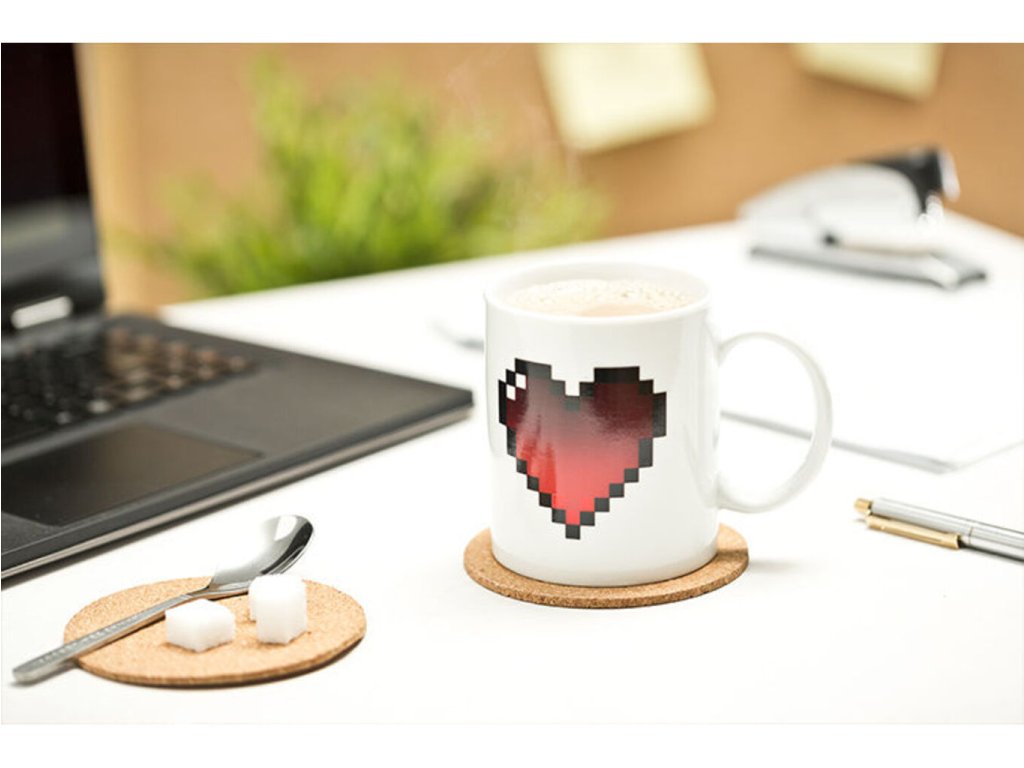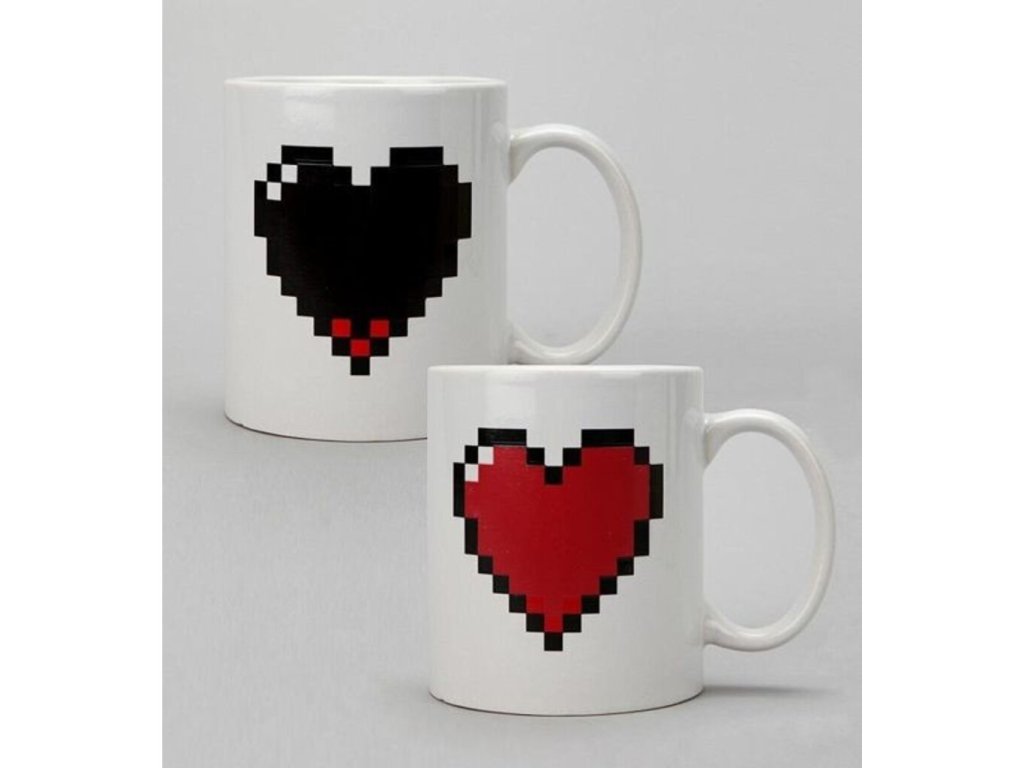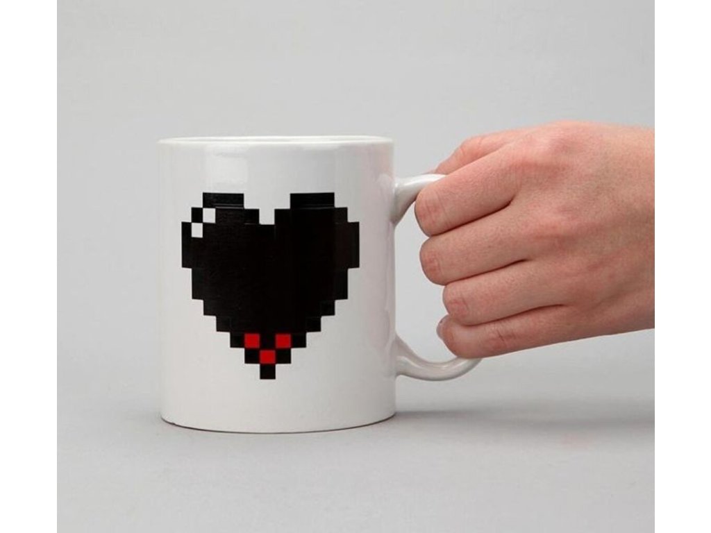 Popřejte své lásce dobré ráno, tímto krásným pixelovým hrnkem srdce. Krásný zamilovaný hrneček skýtá velké překvapení. Pixelové srdíčko, se po naplnění hrnku horkou tekutinou, hezky začervená a rozzáří Váš den. Pixelový hrnek srdce je také ideální dárek pro Vaše počítačově nadané partnery či partnerky, kterým chcete zpříjemnit ranní pití kávy. Pixelový hrnek srdce je originální dárek pro zamilované.