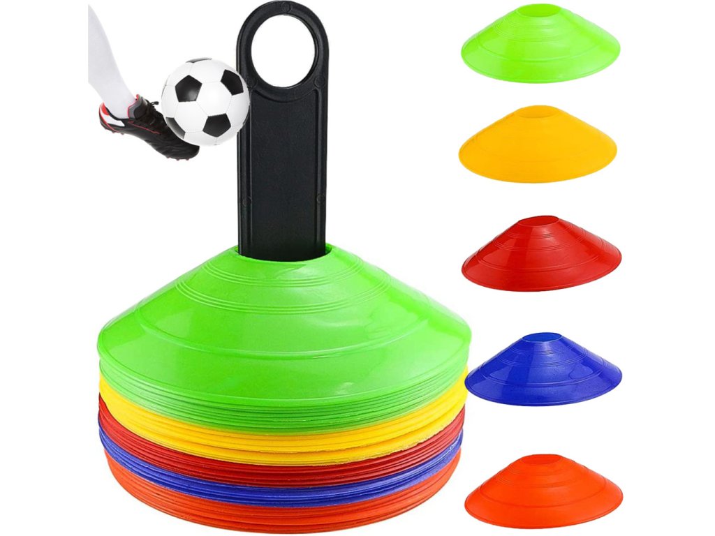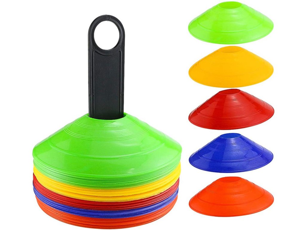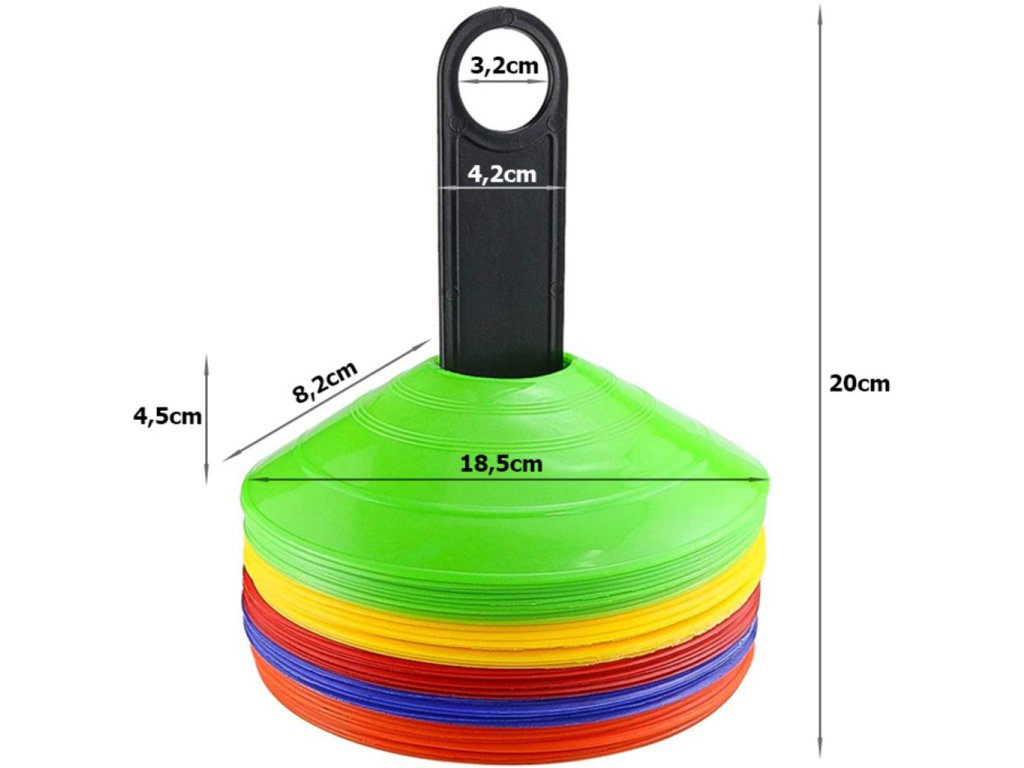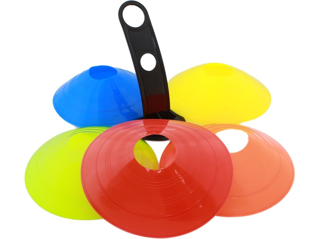 Extrémně praktické tréninkové disky v 5 intenzivních, kontrastních barvách! Jsou ideální pro pořádání tréninkových prostor nebo pro rozdělení do týmů v týmových sportech. Umožňují vám pohodlně určit zóny a pole hry a školení. Sada navíc obsahuje speciální stojan s rukojetí, který umožňuje pohodlné uložení všech disků. Mohou být použity na jakémkoliv povrchu a za každého počasí. Jsou odolné proti vlhkosti a intenzivnímu slunečnímu záření (neprasknou a nevyblednou). Díky barevnému provedení je vhodné pro větší počet sportovců, zjednodušíte si tak rozdělení lidí do týmu. Zvyšuje úroveň organizování kurzů, her a školení. Speciální stojan v sadě umožňuje pohodlné uložení patníků! Ideální doplněk Vašeho tréninku.