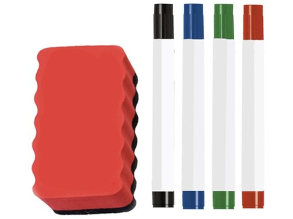 - 4 barevné fixy: 2 černé, 1 modrý, 1 červený