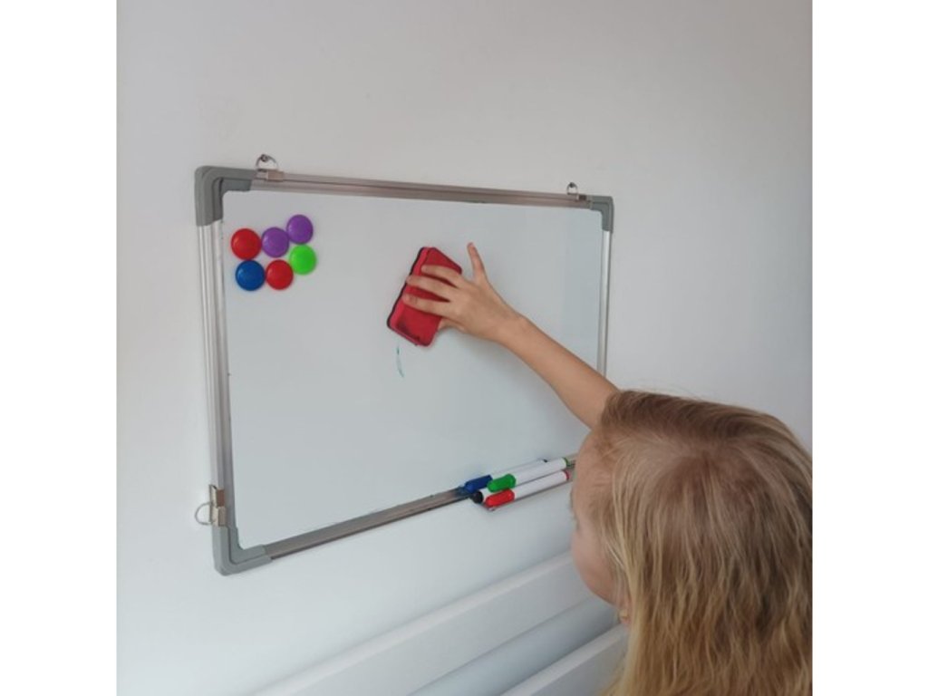 Objevte neomezené možnosti s naší revoluční stíratelnou tabulí! Tato tabule je vaším partnerem pro znalosti, tvorbu i zábavu. Se čtyřmi barevnými fixy a speciální gumou budete mít vždy odvážné myšlenky na dosah ruky. A nemusíte se obávat, kam ji odložit – její magnetické upevnění vás zbaví starostí! Naše multifunkční tabule je ideální pro studenty, profesionály i kreativce. Vytvářejte diagramy, učte se matematiku nebo kreslete a malujte – vaše vize, vaše pravidla! Ať už ve škole, kanceláři nebo doma, tato tabule přinese organizaci a inspiraci do každého prostoru. Díky flexibilnímu zavěšení můžete tabuli umístit horizontálně nebo vertikálně podle vašich představ. Přiložená polička na příslušenství s barevnými magnety se postará, že vše potřebné budete mít vždy po ruce. Investujte do své kreativity a dejte vašim nápadům volný prostor s naší stíratelnou tabulí!