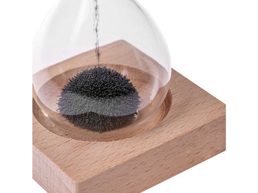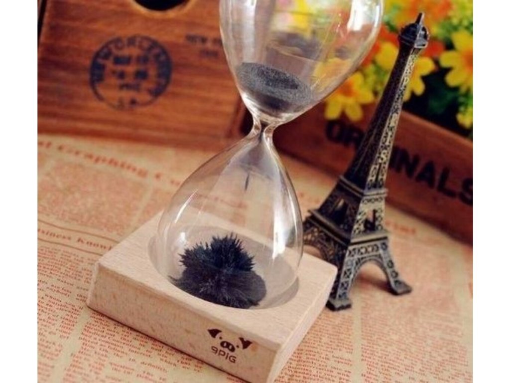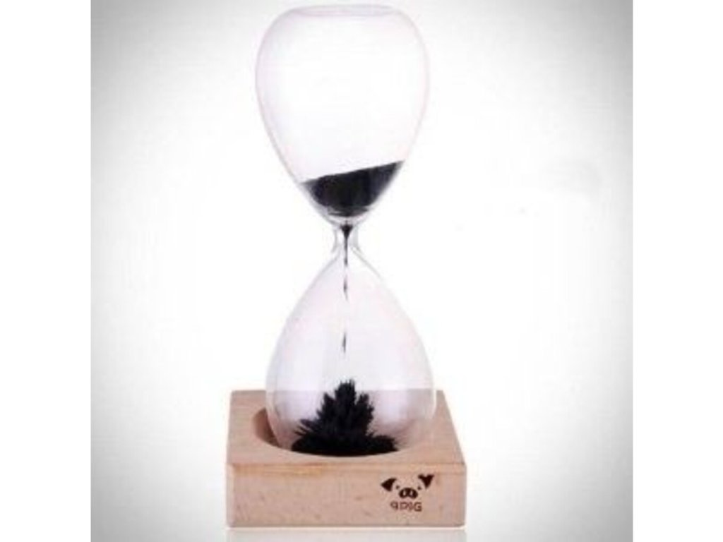 Pořiďte si na stůl tuto stylovou dekoraci. Magnetické přesýpací hodiny slouží jako krásný doplněk Vašeho interiéru a také jako šikovný předmět na odreagování. Nejedná se totiž o obyčejné přesýpací hodiny. Místo klasického písku jsou v hodinách kovové hobliny. Stačí hodiny položit na přiloženou dřevěnou podložku, v níž se ukrývá magnet. A pak můžete sledovat hypnotizující efekt, způsobený magnetickým polem. Kovové hobliny Vám v hodinách připraví pěknou podívanou. Zpestřete svůj kancelářský stůl v práci a kupte si tyto jedinečné hodiny. Magnetické přesýpací hodiny jsou originální dárek na Váš stůl.
