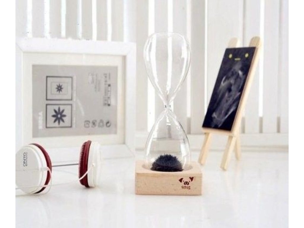 - V dřevěné základně přesýpacích hodin je magnet, díky kterému podložky „tančí“