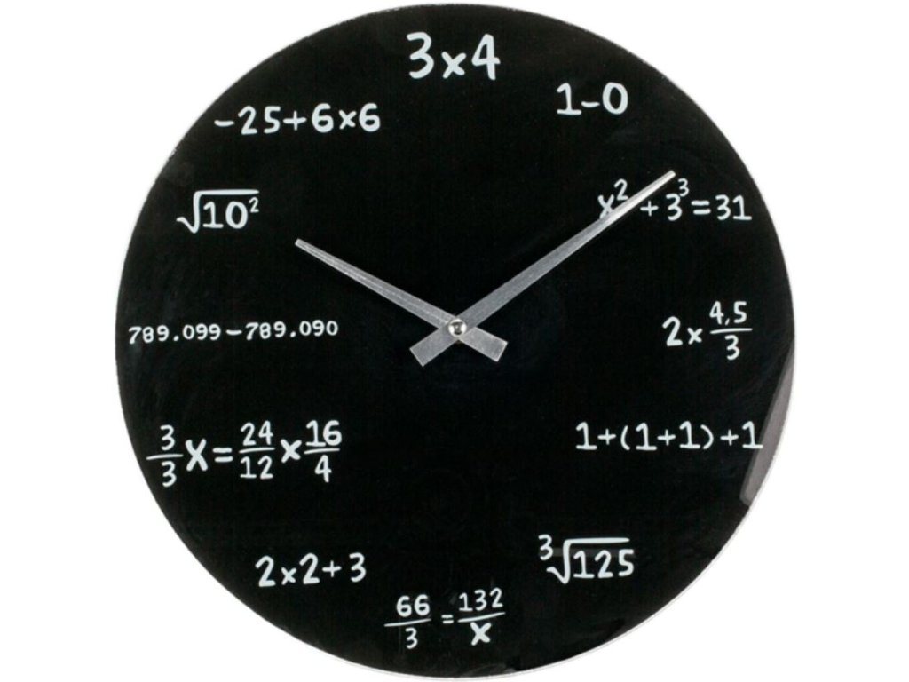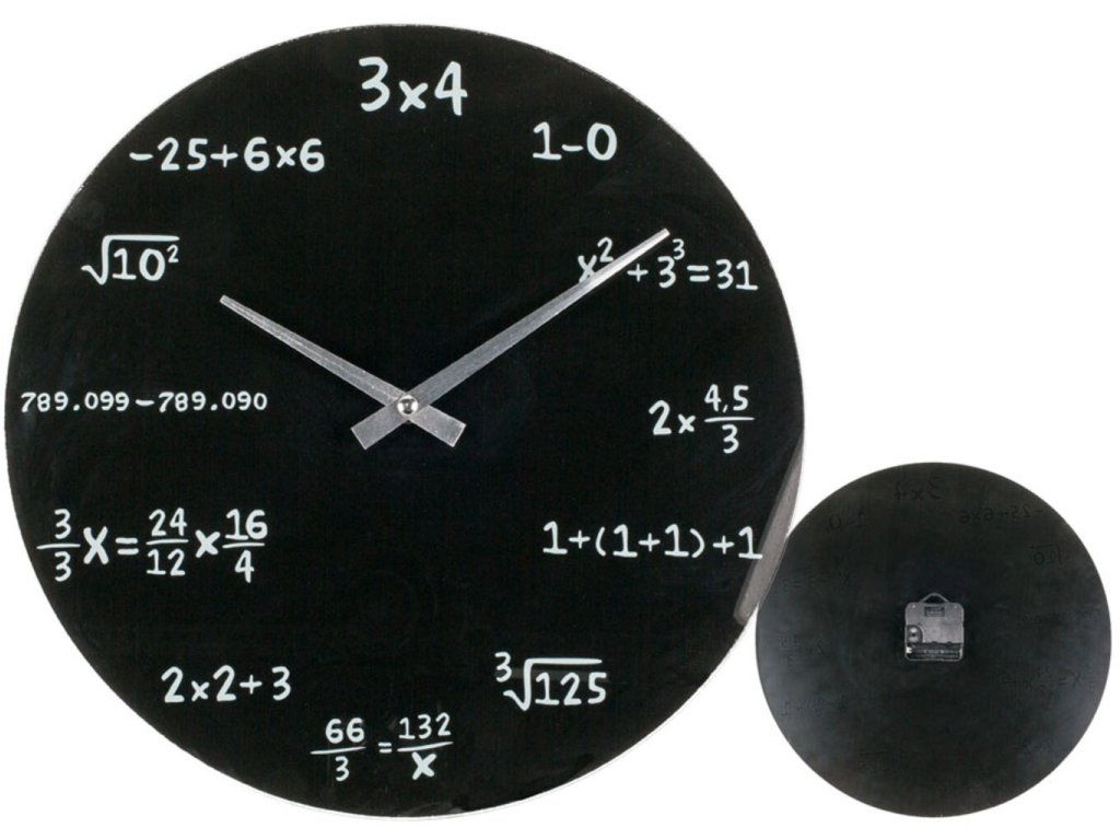 Máte doma matematika nebo jen chcete vypadat odlišně od zbytku světa? Díky těmto matematickým hodinám se Vám to rozhodně podaří. Nač mít na hodinách klasické číslice, když můžete mít každé číslo vyjádřeno pomocí jiného matematického zápisu? Těmito hodinami ozvláštníte Váš dům o originální dárek.