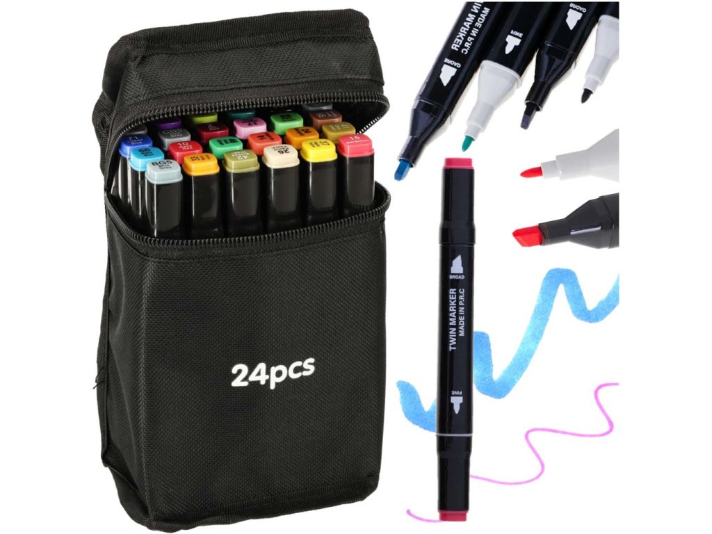 Sada oboustranných fixů 24 ks je ideální volbou pro kreativní projekty, od jemných skic až po intenzivní kolorování. Fixy jsou vybaveny dvěma typy hrotů – jemným pro přesné detaily a širokým pro rychlé vybarvování větších ploch. Fixy s alkoholovým inkoustem nabízejí intenzivní a dlouhotrvající barvy odolné proti vyblednutí a vodě. Rychleschnoucí složení minimalizuje rozmazání, a díky vysoké výdrži náplně zvládnou až 300 metrů kreslení. Sada oboustranných fixů 24ks zahrnuje také praktické etui s organizérem, což zajišťuje dokonalý přehled o všech barvách.
