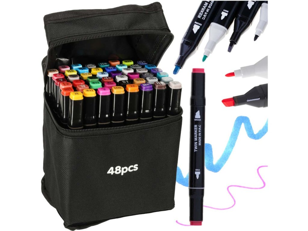 Kreativní sada 48 oboustranných fixů Touch je nabídkou pro každého, kdo rád kreslí a hraje si s velkou škálou barev. Dokonalé barvy a barevná hloubka dělají díla vytvořená pomocí fixů výrazná, přirozená a dlouho nevyblednou. Sada fixů je ideální pro děti na zábavu a školní výtvarné práce, pro dospělé pak na omalovánky nebo vlastní výtvarná díla. Sada barev popisovačů obsažená v sadě byla vybrána tak, aby se daly použít v různých oblastech kresby. Každý značkovač je vybaven dvěma širokými hroty. Jeden široký hrot umožňuje nakreslit čáru, v závislosti na tlaku hrotu na arch, a tenký o tloušťce čáry. Hroty jsou vyrobeny z tvrdého materiálu, takže se neopotřebovávají ani neštěpí. Vložka pera byla navržena tak, aby umožňovala rovnoměrnou distribuci inkoustu bez úniků a skvrn. Barevné fixy usnadňují označení důležitých informací, ale většinou počet dostupných barev rychle končí. Tato sada obsahuje až 48 zvýrazňovačů, které jistě splní očekávání těch nejnáročnějších lidí. Jedná se o velmi praktické oboustranné zvýrazňovače. Na jedné straně mají kulatou hlavu, která se bude skvěle hodit na psaní či kreslení, na druhé straně mají hlavu šikmou, která se skvěle hodí pro zvýraznění důležitých informací. Tyto velmi účinné kotce mají speciální náplň, která vystačí až na 300 m , takže jistě poslouží dlouhou dobu v bezvadném stavu. Barevné fixy jsou baleny ve velmi praktickém pouzdře zajištěném zipem. Usnadňuje uspořádání zvýrazňovačů a můžete je mít po ruce, aniž byste riskovali, že polovinu z nich ztratíte.