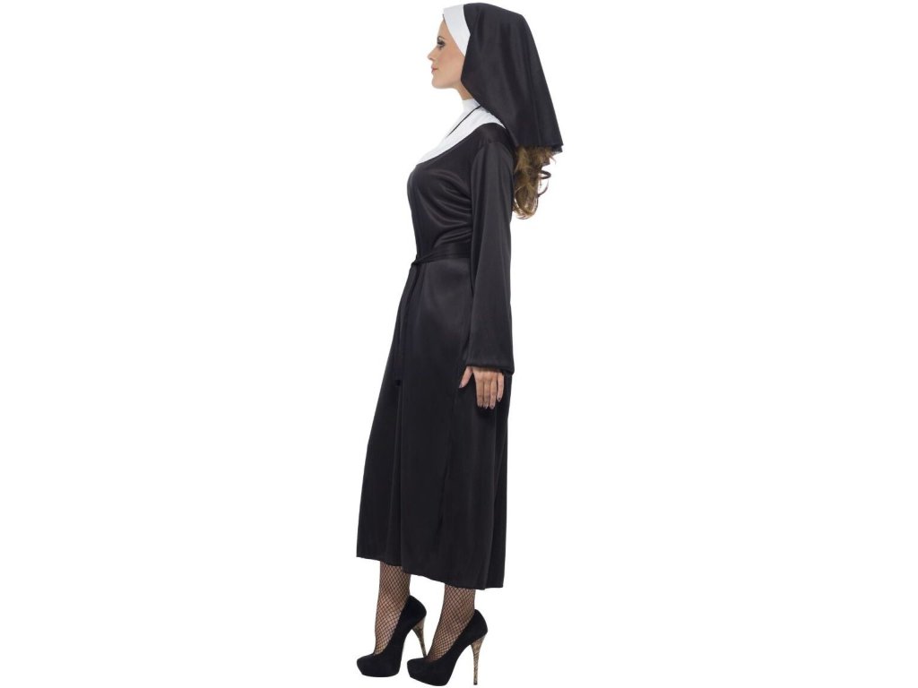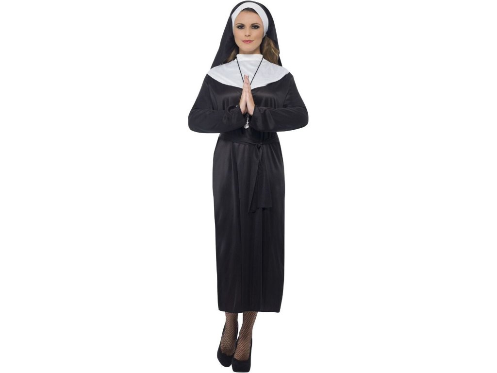 S tímto kostýmem tradiční jeptišky pro dospělé můžete být naším průvodcem do světa posvátna. A i když je klášter normálně jen galantským druhem zařízení, rádi si nemyslíme, že moderní svět je přijatelnější. Takže chlapi, klidně se přihlašte. Ve skutečnosti to máme i ve velikostech pro batolata a děti, takže do této jeptišky je zván každý! V těchto černých šatech s dlouhým rukávem se budete cítit skvěle. Bílý límeček se zapíná na suchý zip a závoj je našitý na čelenku, která pohodlně sedí a zavazuje se v zadní části hlavy. Zahrňte své oblíbené doplňky s křížovou tématikou nebo se dokonce dejte na plné pecky a pořiďte si sadu na exorcismus pro případ, že se musíte vypořádat se skutečnými démony!