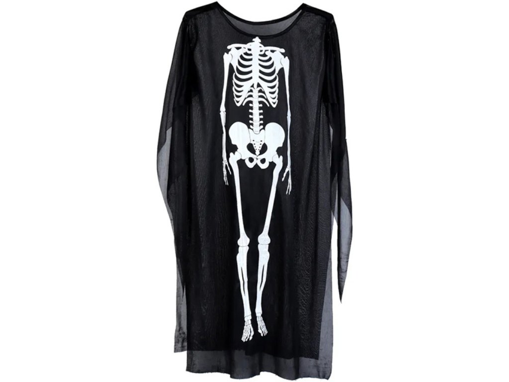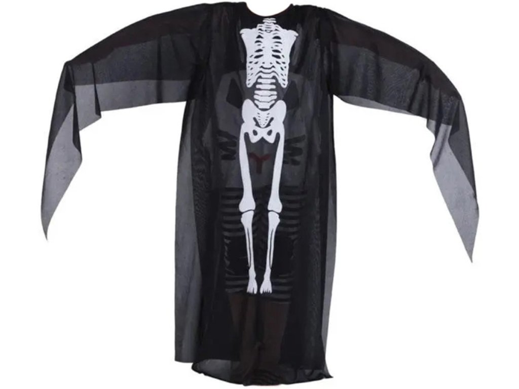 Plášť s kostrou COCO, Halloween 120 cm, černobílá