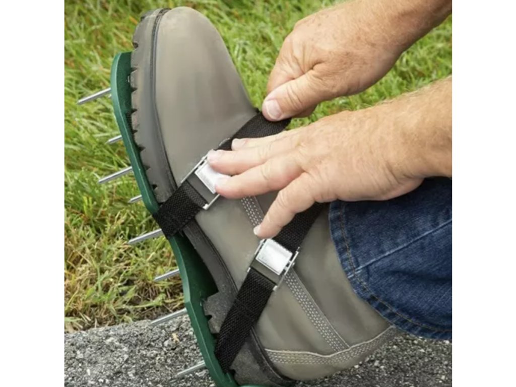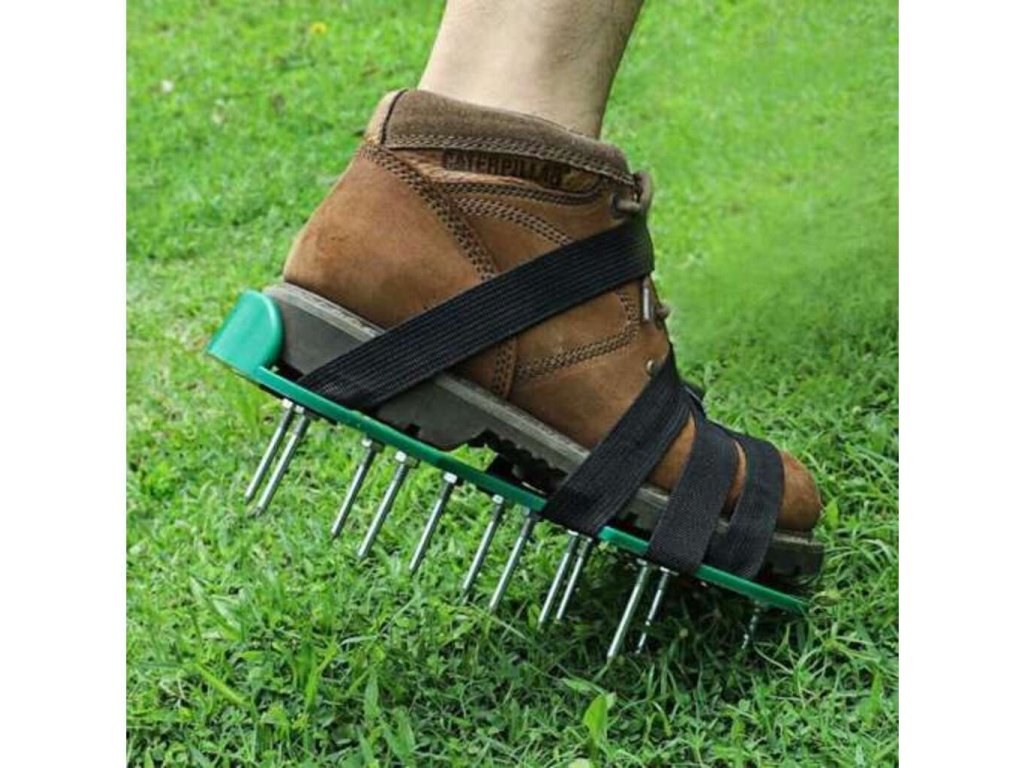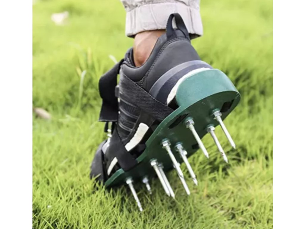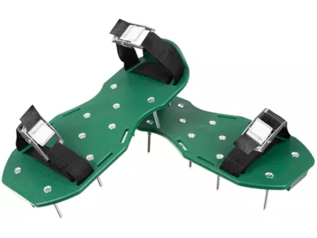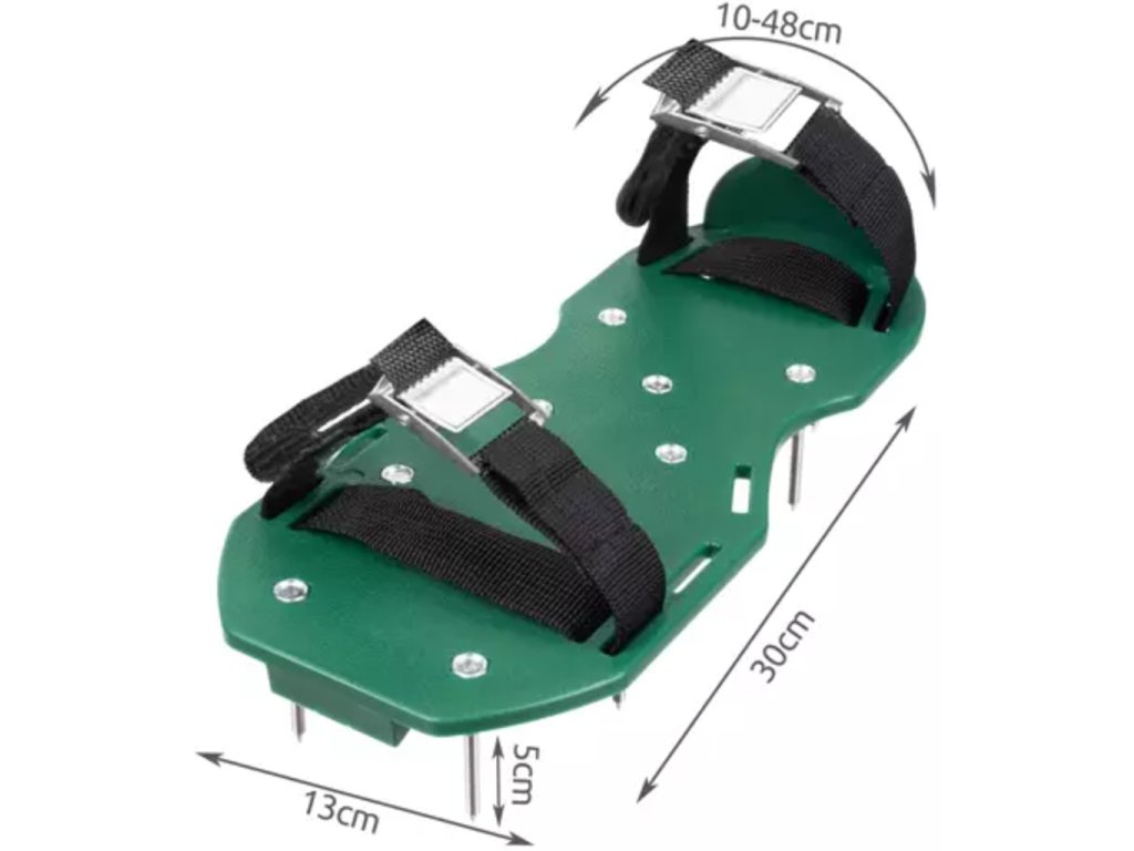 Praktický sandálový AERATOR - provzdušňovač trávy se používá pro pohodlné provzdušňování zelených povrchů a trávníků. Nasaďte si na boty, upravte popruhy na velikost vaší nohy a můžete snadno provádět čištění zahrady a přitom se starat o svůj trávník! Provzdušňování nikdy nebylo tak pohodlné a rychlé! Provzdušňování je nezbytný proces, který udržuje váš trávník v dobrém stavu! Zahrnuje propíchnutí půdy do hloubky asi 10 cm, což umožňuje půdě získat přístup k kyslíku. To zvyšuje účinnost růstu trávy a její flexibilitu. AERATOR - provzdušňovač trávy umožňuje půdě absorbovat více vody a živin z hnojiva, což zintenzivňuje naše úsilí udržet trávník v dobrém stavu!