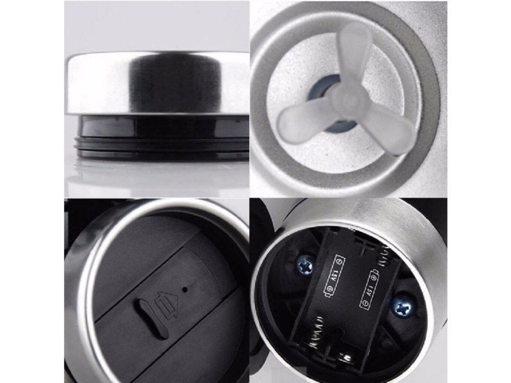 Ráno jste unavení a nechce se Vám zdržovat zdlouhavým mícháním a foukáním horkého čaje nebo kávy. Pro tuto příležitost Vám nabízíme moderní líný hrnek Deluxe, který Vám nápoj zamíchá sám. Stačí stisknout tlačítko na oušku hrnečku a praktický motorek na dně hrnečku zamíchá Váš nápoj. Proč si neušetřit trochu času a zdržovat se mícháním nápoje, když tento šikovný hrneček udělá vše sám. Můžete si ho sebou vzít do práce, kde na nějaké míchání nemáte čas. Líný hrnek Deluxe je originální dárek k narozeninám nebo Vánocům.
