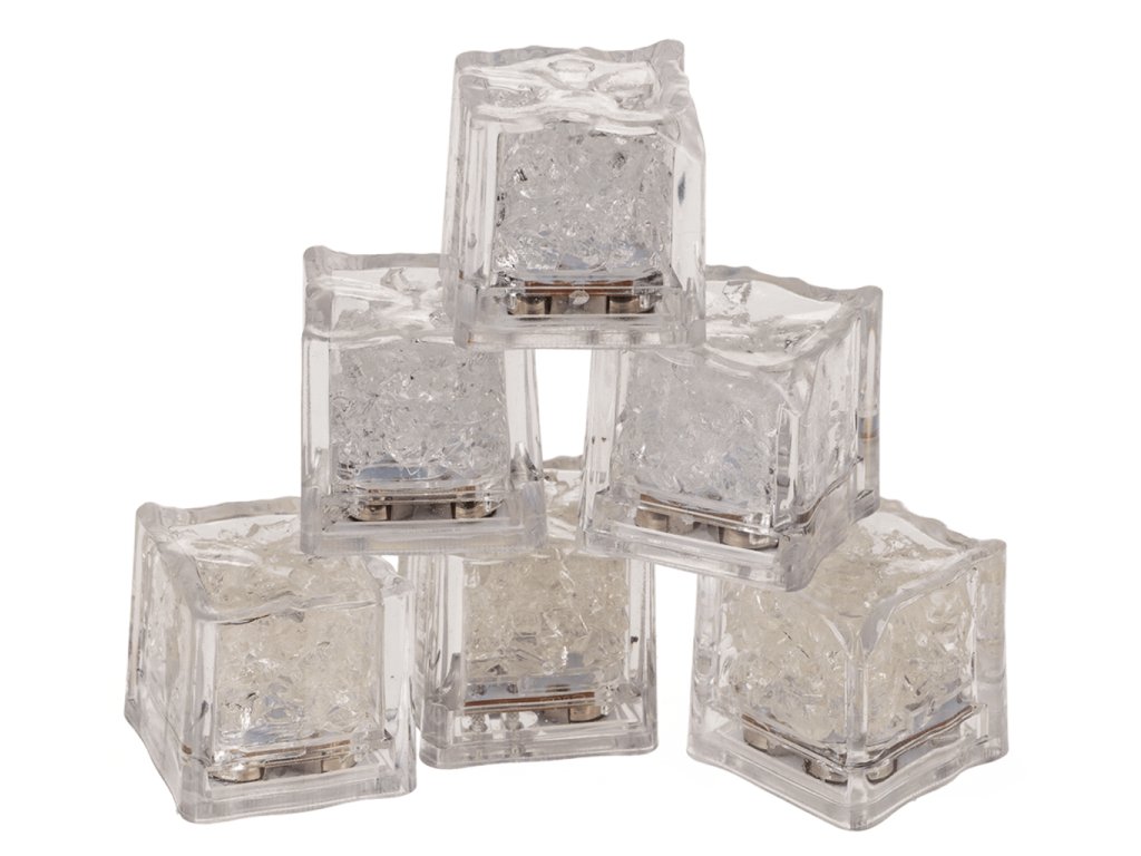 Svítící kostky ledu 6 ks jsou skvělé na každou párty pro vylepšení tvarového světelného designu. S těmito kostkami vždy najdete svou sklenici ve tmě. S vícebarevným LED světlem uvnitř vytvoříte krásnou romantickou atmosféru doma, v baru nebo klubech. S výdrží baterie můžete dosáhnout více než 30 hodin světelného efektu. Vyrobeno z vysoce kvalitního čirého akrylového plastu, naplněné netoxickým gelovým materiálem, který je absolutně bezpečný a voděodolný. Bezpečně, že jej můžete dokonce vložit do sklenice na nápoje pro osvětlení (bez funkce vodního chlazení). LED kostky ledu se aktivují kapalinou. LED svítící kostky ledu se automaticky rozsvítí, když je vložíte do vody, a zhasne, když se vyjme. Ideální pro svatby, párty, bary, kluby, šampaňské věže a další sváteční dekorace s úžasným vzhledem v temné atmosféře.