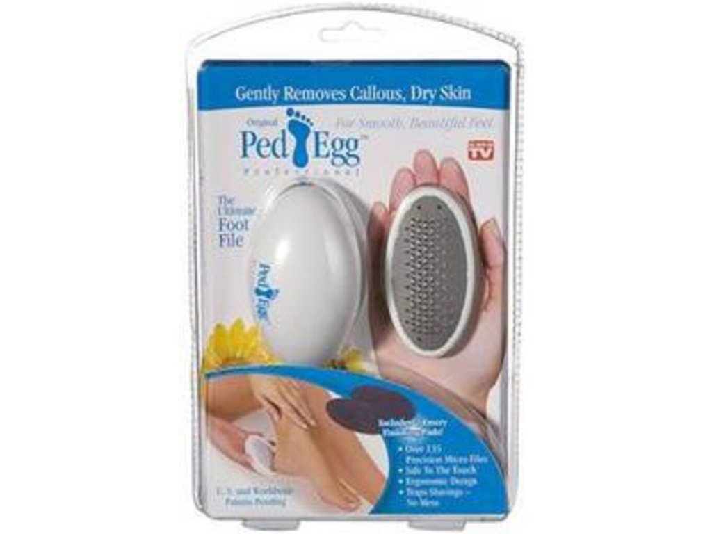 Trápí vás tvrdé a suché paty? Pomocí této jednoduché zdravotní pomůcky Ped Egg oškrábete z pat ztvrdlou kůži za několik krátkých okamžiků a ještě k tomu bez nepořádku. Pomůcka je anatomicky tvarovaná a příjemně padne do každé ruky. Originální dárek pro každého.