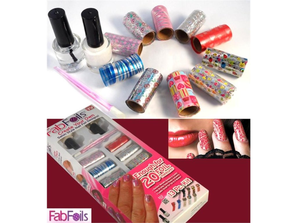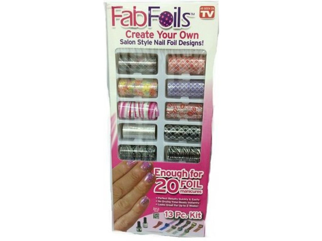 Přála byste si mít krásné nehty dle Vašich snů, ale nemáte čas ani peníze na salonky? Vyřešte tento problém díky zdobícím nehtovým fóliím FabFoils. Jen s těmito fóliemi dosáhnete za krátkou chvíli svých vysněných nehtů a to za daleko příznivější cenu, než ve specializovaném salonku. Navíc při aplikaci nevdechujete nepříjemné výpary. Vybrat si můžete fólii dle Vaší fantazie a klidně ji i zkombinovat s třpytivými laky. Fólii můžete použít na nehty rukou i nohou a v případě, že se Vám nebudou líbit, je snadno odlakovačem sundáte. Zdobící nehtová fólie FabFoils je originální dárek pro slečny a ženy.