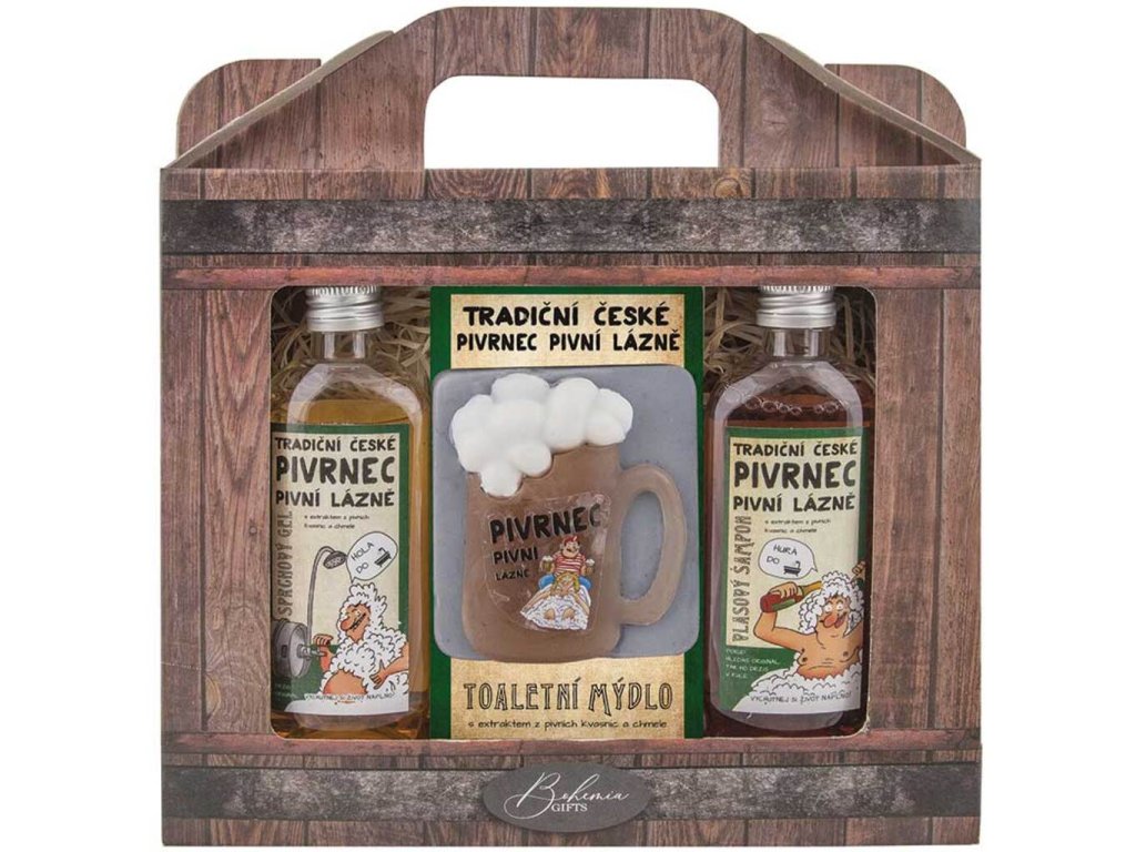 Darujte svému partnerovi nebo tatínkovi něco pro zdraví. Tento kosmetický balíček Pivrnec mini - gel+mýdlo+šampon je skvělým dárkem pro každého muže. Přípravky obsahují extrakt z chmele a pivních kvasnic. Chmel obecný je přínosný díky svým hydratačním a antiseptickým účinkům. Obsahuje proteiny, lipoidy, vitamíny a další látky, které prospívají pokožce. Přípravky zajišťují šetrné mytí, vyvážené pH a zachovávají ochranný film a vlhkost pokožky. Dopřejte si tuto léčivou pivní koupel. Kosmetický balíček Pivrnec mini - gel+mýdlo+šampon je originální dárek pro muže.