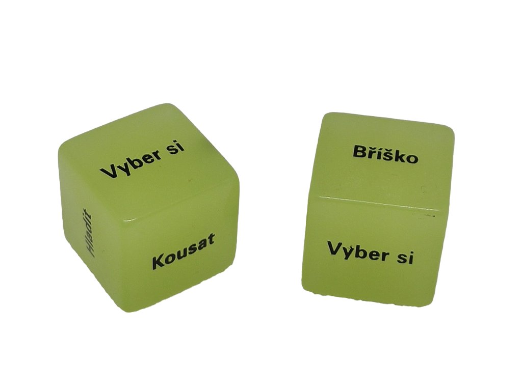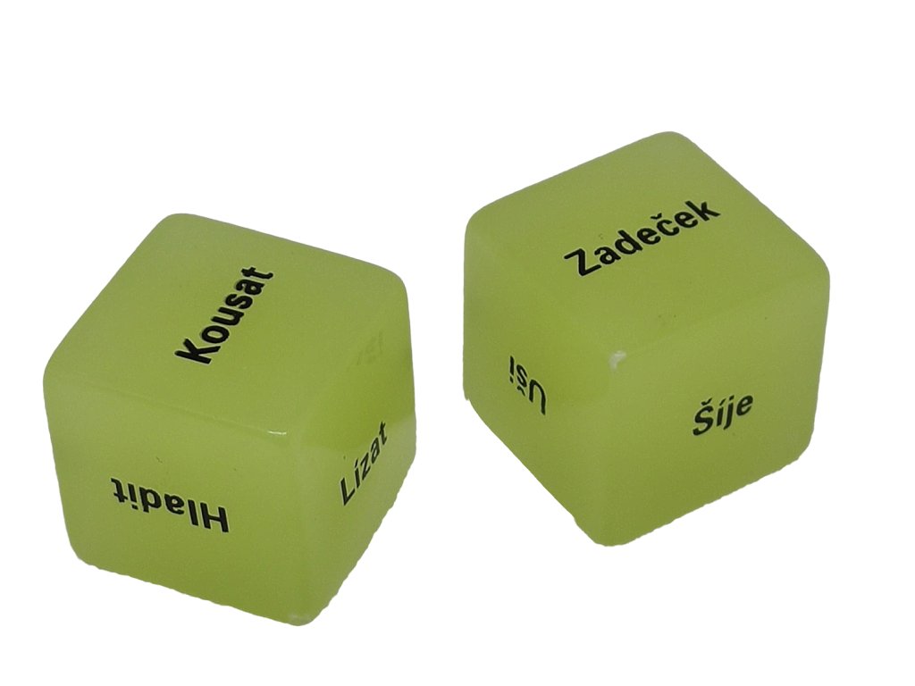 Chcete-li v manželském nebo partnerském životě nějakou změnu, pořiďte si tyto kostky - Láska je hra. Na jedné kostce je uvedena činnost a na druhé místo pro její vykonání, například Líbat a Krk. Kostka samozřejmě obsahuje i odvážnější slovíčka. Udělejte si radost a pořiďte si s partnerkou tento originální dárek. Kostky - Láska je hra si jistě oblíbíte a nebudete chtít přestat hrát.