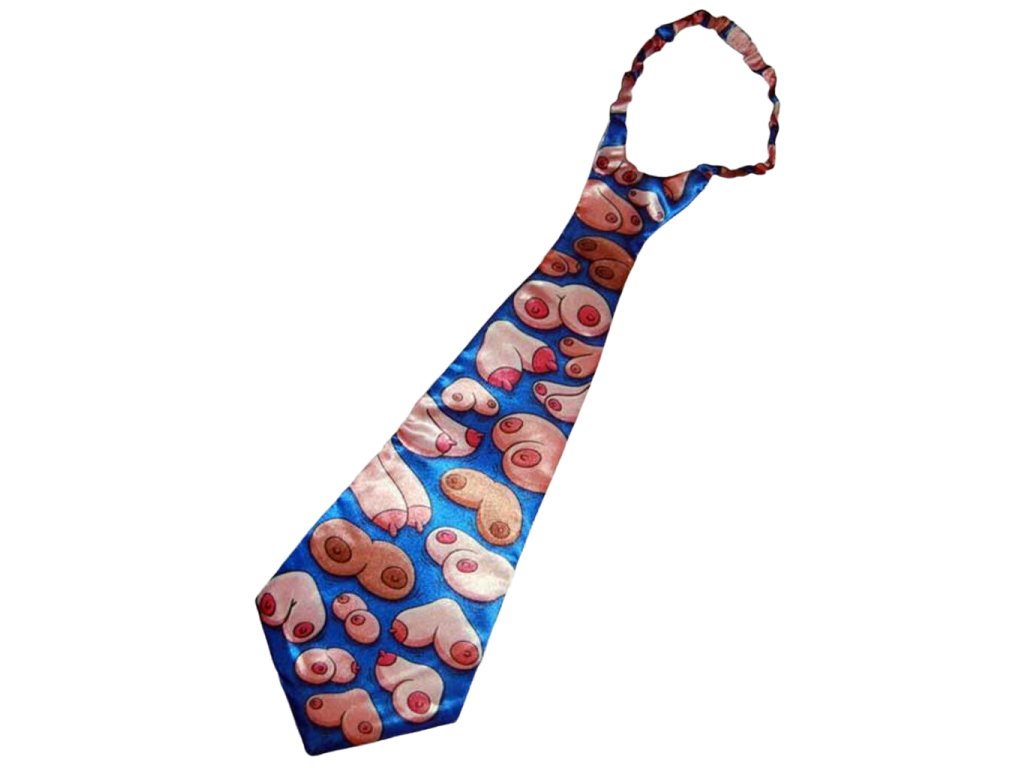 Pánové, dělá Vám problémy uvázat si správně kravatu? Zapomeňte na klasickou vázanku, tato stylová kravata je totiž na suchý zip. Ušetří Vám tak mnoho práce a času. Kravata - Prsa je s vtipným potiskem, který Vašemu okolí sdělí, že máte opravdu rád dámská ňadra. Veselá kravata je potištěna různými druhy dámských prsou. Vezměte si tuto jedinečnou kravatu na párty a oslňte své okolí. Kravata - Prsa je originální dárek pro muže. Buďte stylový, a třeba i uděláte na někoho dojem!