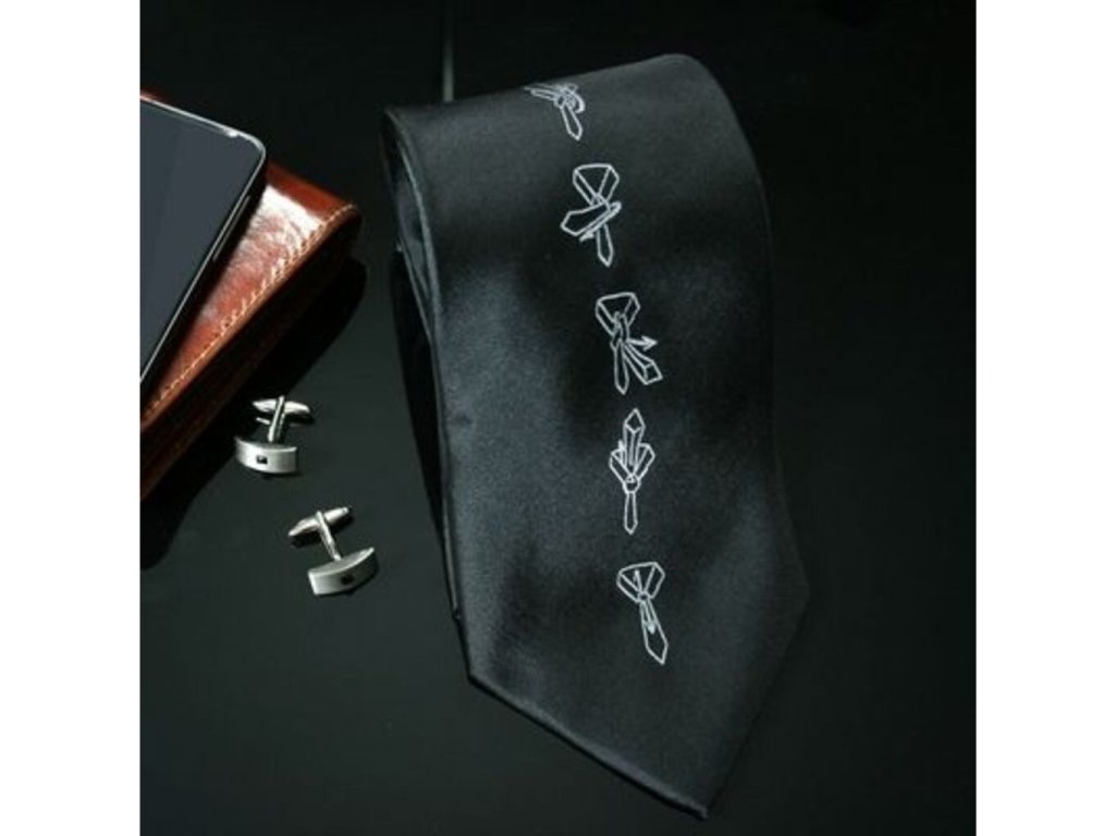 Chystáte se na ples, svatbu, narozeniny a nevíte jak se váže kravata? Máme pro Vás řešení. Pořiďte si kravatu s návodem na vázání. Kravata s návodem na vázání má na sobě přesný postup, jak kravatu uvázat. Vtipné na tom je, že každý kdo tuto kravatu uvidí, uvidí také, jak se kravata váže. Kravata je v černé barvě, takže se hodí na každou příležitost. Kravata s návodem na vázání je originální dárek pro každou příležitost.