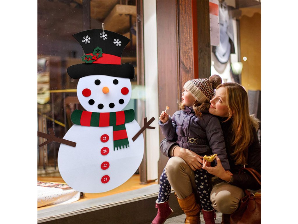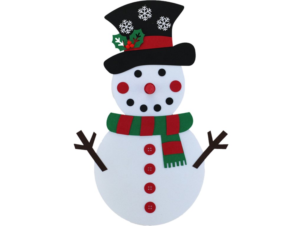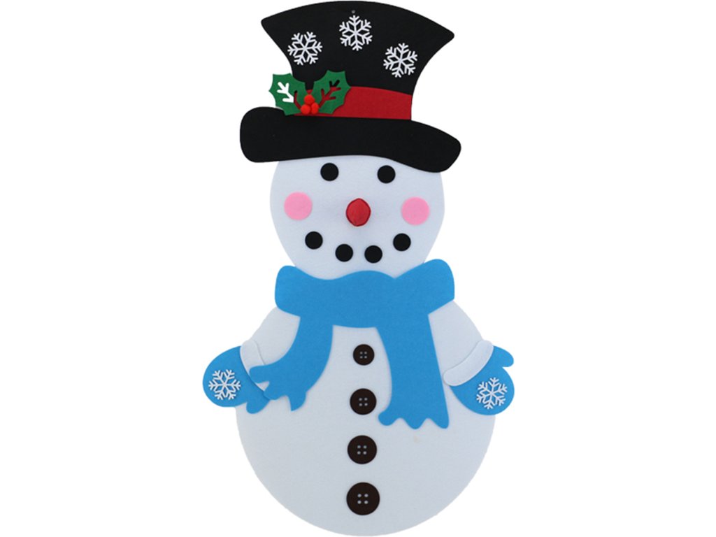 Vánoční plstěný sněhulák je výborná hračka do dětského pokojíčku, která rozvíjí kreativitu těch nejmenších, ale i originální dekorace do vašeho interiéru, či exteriéru. Vybaveno 30 odnímatelnými ozdobami, které lze připevnit a odepnout kdekoli na vánočním stromku. Vyrobeno z lehkého a bezpečného materiálu (filc). Speciální přívěsek umožňuje zavěšení na zeď.
