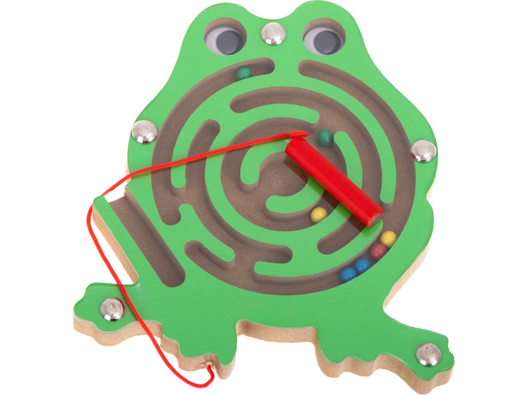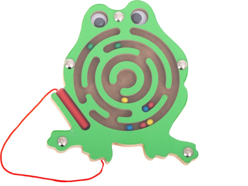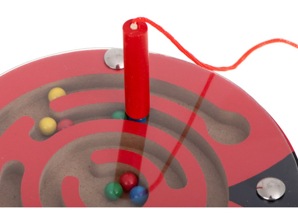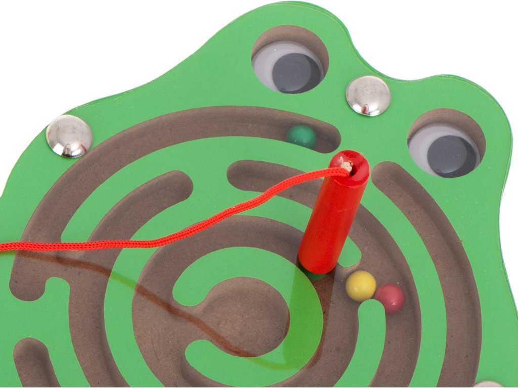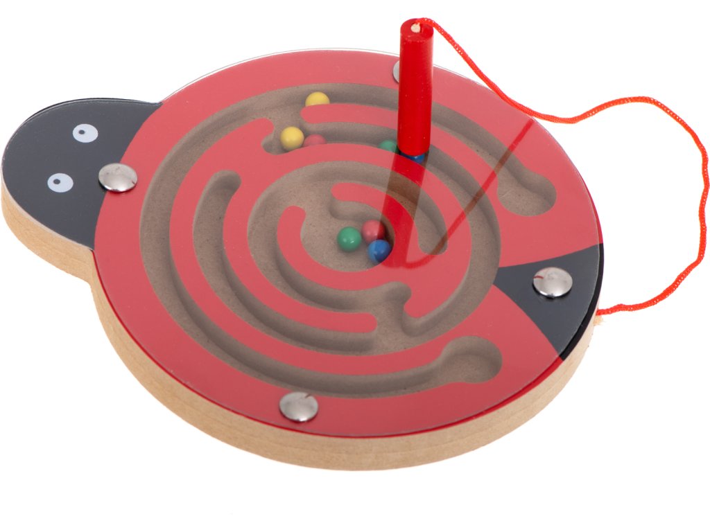 Celý labyrint se skrývá pod tenkým průhledným sklem. Hračka, která zabaví vaše batole uvnitř na celé hodiny. Pozitivně ovlivňuje rozvoj logického myšlení a koordinace oko-ruka. Hra s bludištěm bude navíc skvělým tréninkem koncentrace. Funguje skvěle při učení názvů barev. Také bude perfektním společníkem na dlouhé, únavné cestě. Všechny hrany hračky byly pečlivě obroušeny, aby se tříska nedostala do rukou dítěte. V berušce a žábě se uzavřel labyrint s kovovými kuličkami. Zábava spočívá v tom, že pomocí stylusu s magnetem posunete barevné kuličky do středu. Navíc, aby byl úkol obtížnější, mohou být kuličky vedeny bludištěm otáčením hračky v různých směrech.