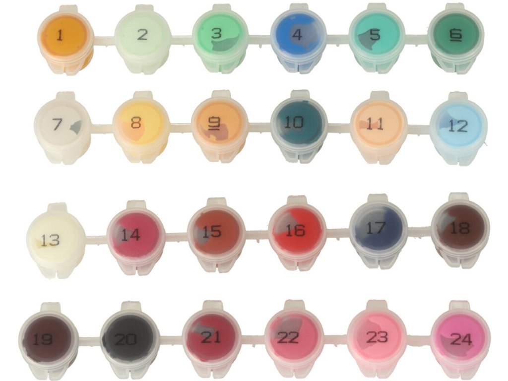 K zahájení malování toho nepotřebujete mnoho, protože potřebné příslušenství je již součástí balení - plátno s natištěným obrázkem, tři různě silné štětce a nádoby s barvami. Jediné, co si musíte připravit, je šálek vody nebo kapesníčky. Množství barev dokonale odpovídá tomu, kolik potřebujete namalovat celý obraz. Takže se nebojte, žádná barva vám nedojde! Malování podle čísel dokonale rozvíjí manuální dovednosti – malování polí barvami vyžaduje velkou přesnost a dobrý úchop štětce.