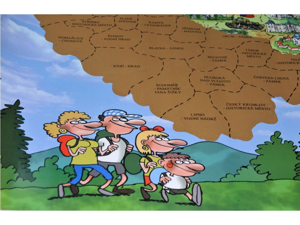Patříte mezi vášnivé cestovatele, nebo máte alespoň určité přání kam byste se v České republice jeli podívat? Jako názornou pomůcku Vám nabízíme tuto stírací mapu České republiky, kde si můžete pomocí mince seškrábat a vyznačit města, které jste navštívili. Můžete si takto vyznačit plány své dovolené, nebo se pochlubit, kde jste již byli. Takto můžete mít stále přehled o Vašich cestách, výletech a plánech dovolené. Tato šikovná mapa Vám pomůže nejen zdokonalit zeměpisné znalosti, ale také může cestovatelům posloužit jako dekorace s vyznačenými prozkoumanými místy. Stírací mapa České republiky je originální dárek pro všechny zeměpisné nadšence a cestovatele.