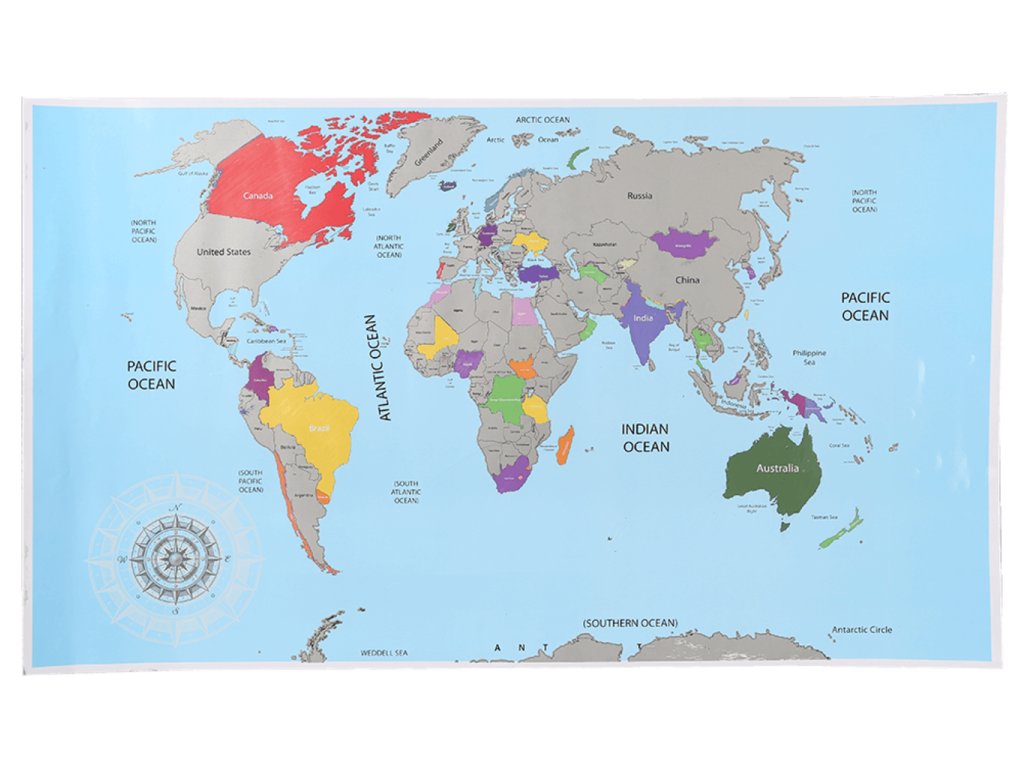Představujeme Vám stírací mapu světa, ideální dárek ne jen pro ty, co rádi cestují, ale i pro ty, co by rádi cestovali. Scratch map je speciální mapa světa, která je pokryta stírací hliníkovou fólií. Stačí hrubším předmětem setřít tuto zlatavou barvu, jako při stírání losu, a objeví se barevné zobrazení států. Takto si můžete na mapě označovat místa, která jste navštívili, místa, která byste navštívit chtěli, a nebo místa o kterých se zrovna učíte ve škole. Udělejte tímto dárkem radost ne jen sobě, ale i těm, kteří chtějí objevovat svět. Stírací mapa světa je originální dárek pro každého.